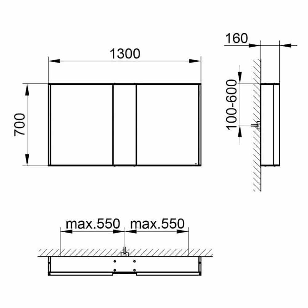 LED-belysning som är lätt att justera och dimma genom den elektroniska sensoromkopplaren, vilket skapar en unik atmosfär i rummet. När de väl har öppnats, roterar de två dörrarna runt ljusbanden och möjliggör optimal belysning både när den är stängd och när den är öppen.
