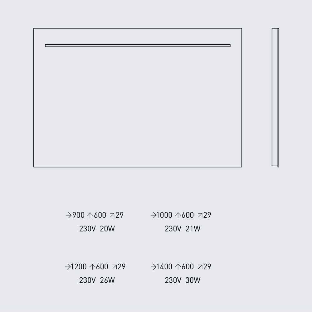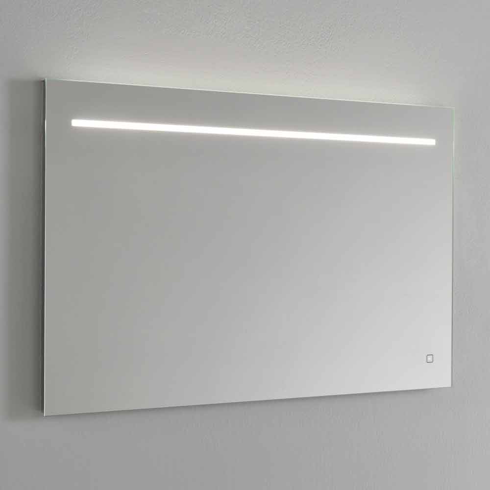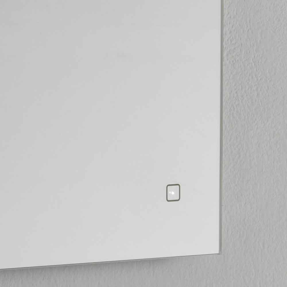 Rektangulär bakgrundsbelyst väggspegel med LED -ljus och stålram Tillverkad i Italien.