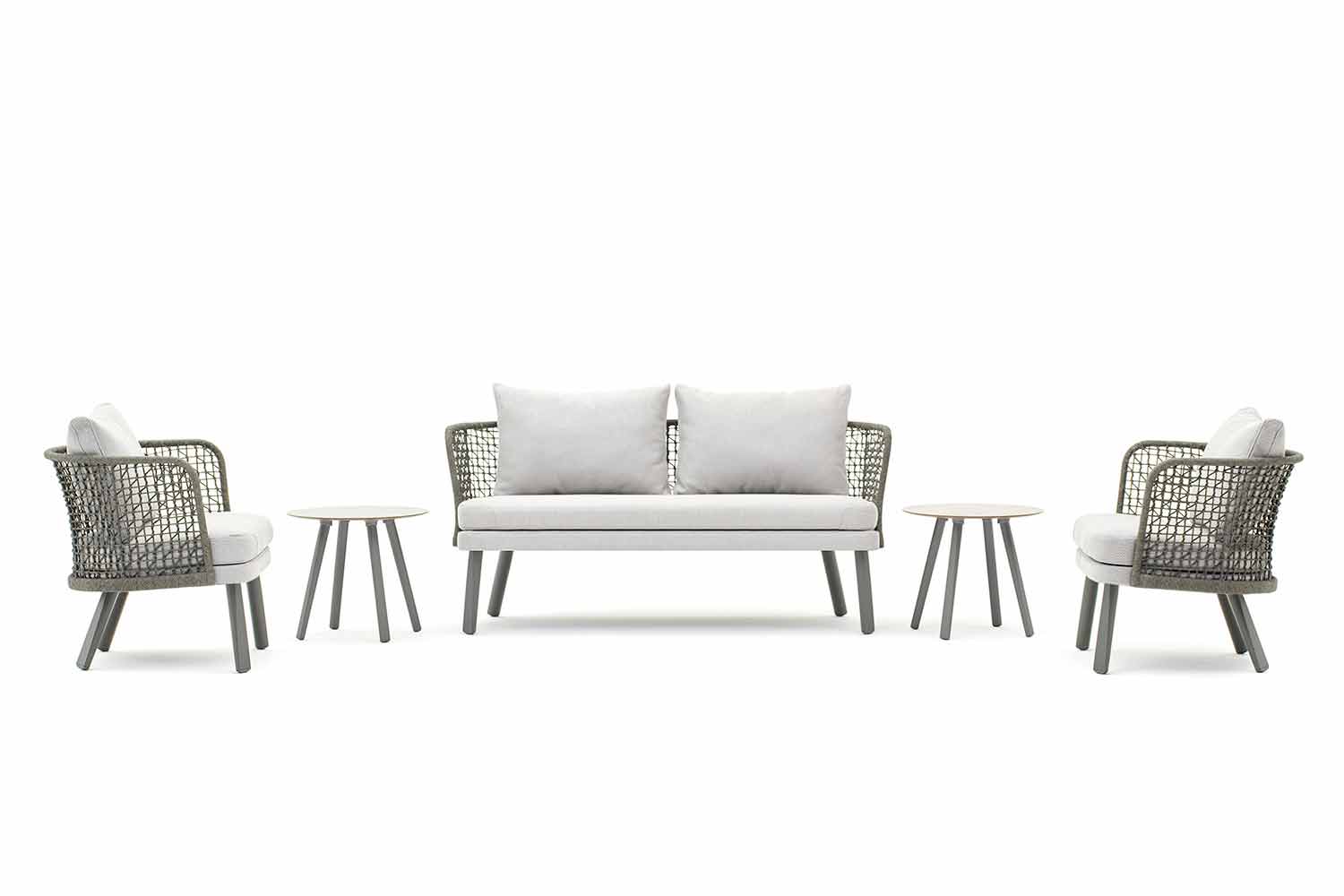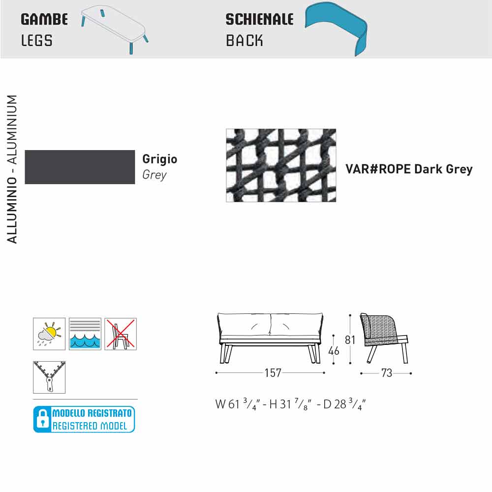 Emma är en spännande utomhus soffa som kännetecknas av en struktur i syntetfiber handvävda med en mörkgrå pulverlackerad aluminiumram .