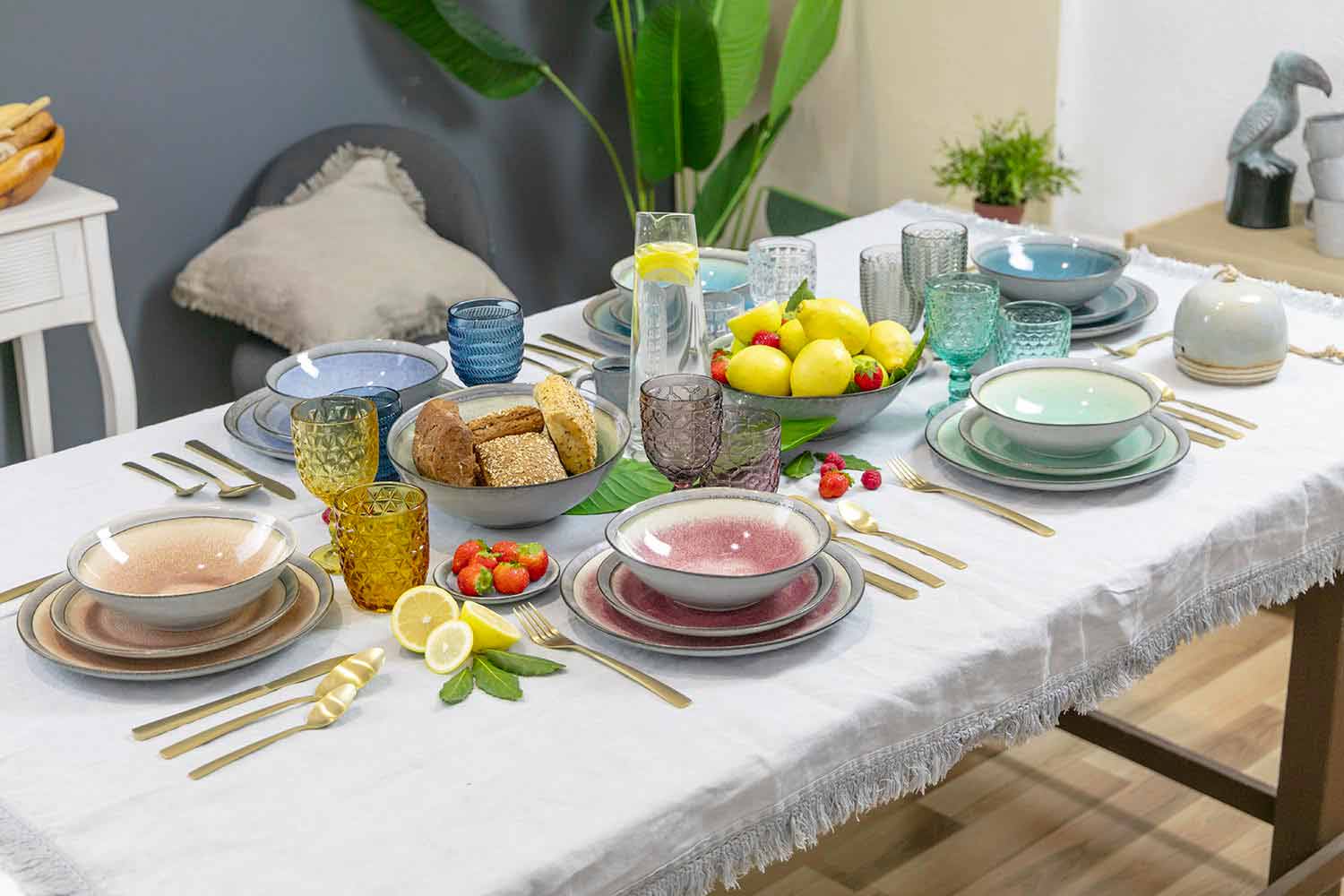 Att sitta vid bordet blir därmed en unik upplevelse, i en balans mellan former och färger genom vilka uppsättningen verkar komma till liv.