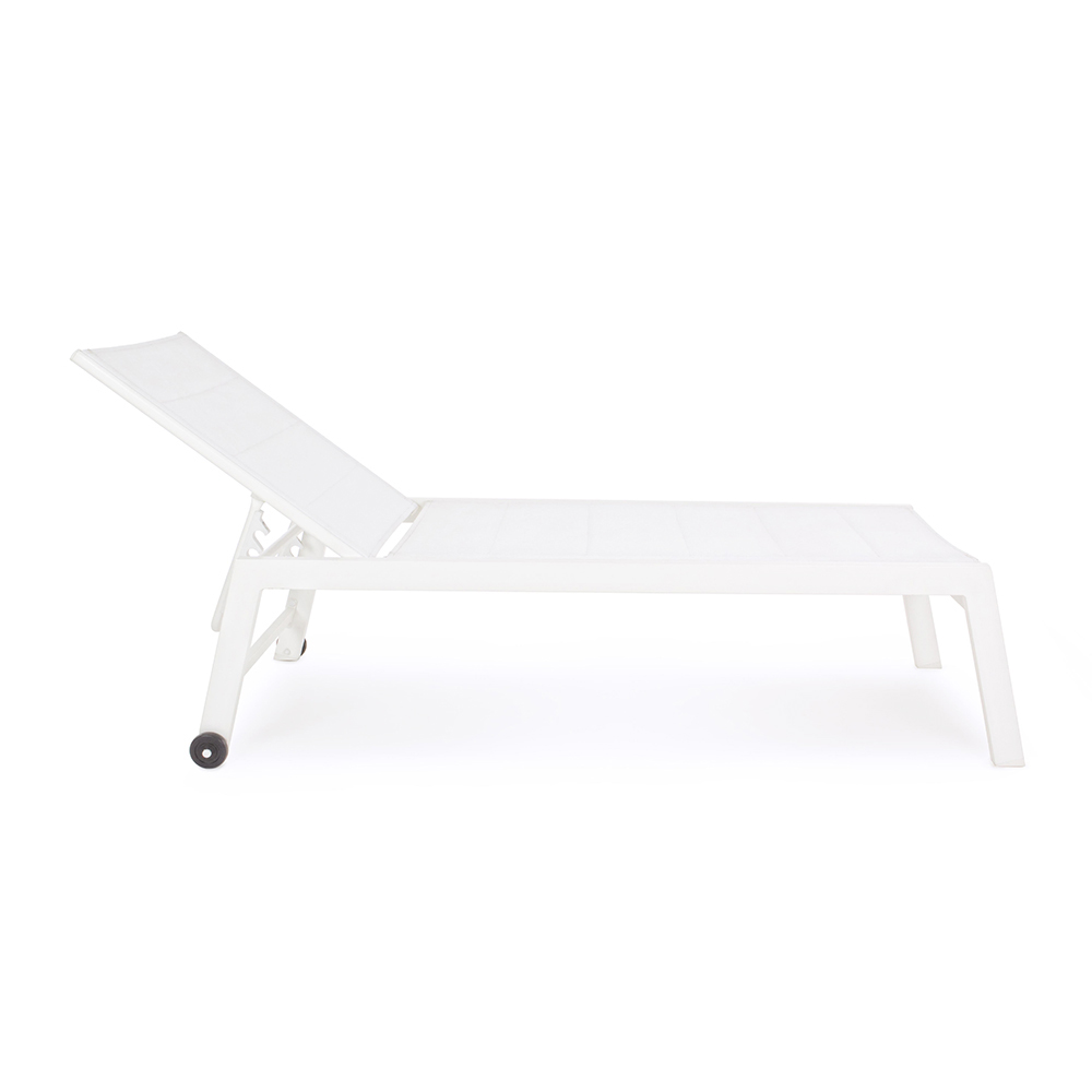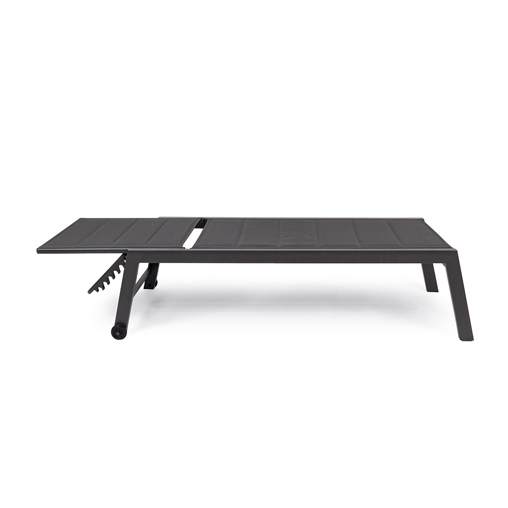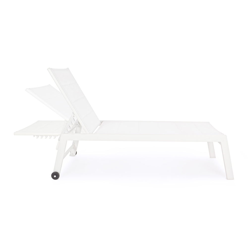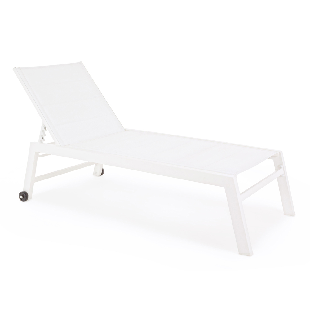 Trädgårdsdesign schäslong i aluminium och utrustad med hjul för utomhusbruk.