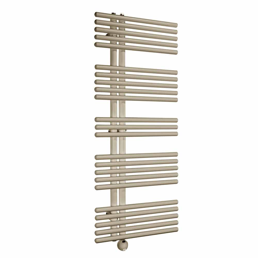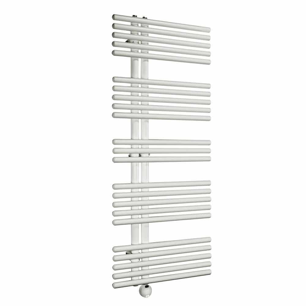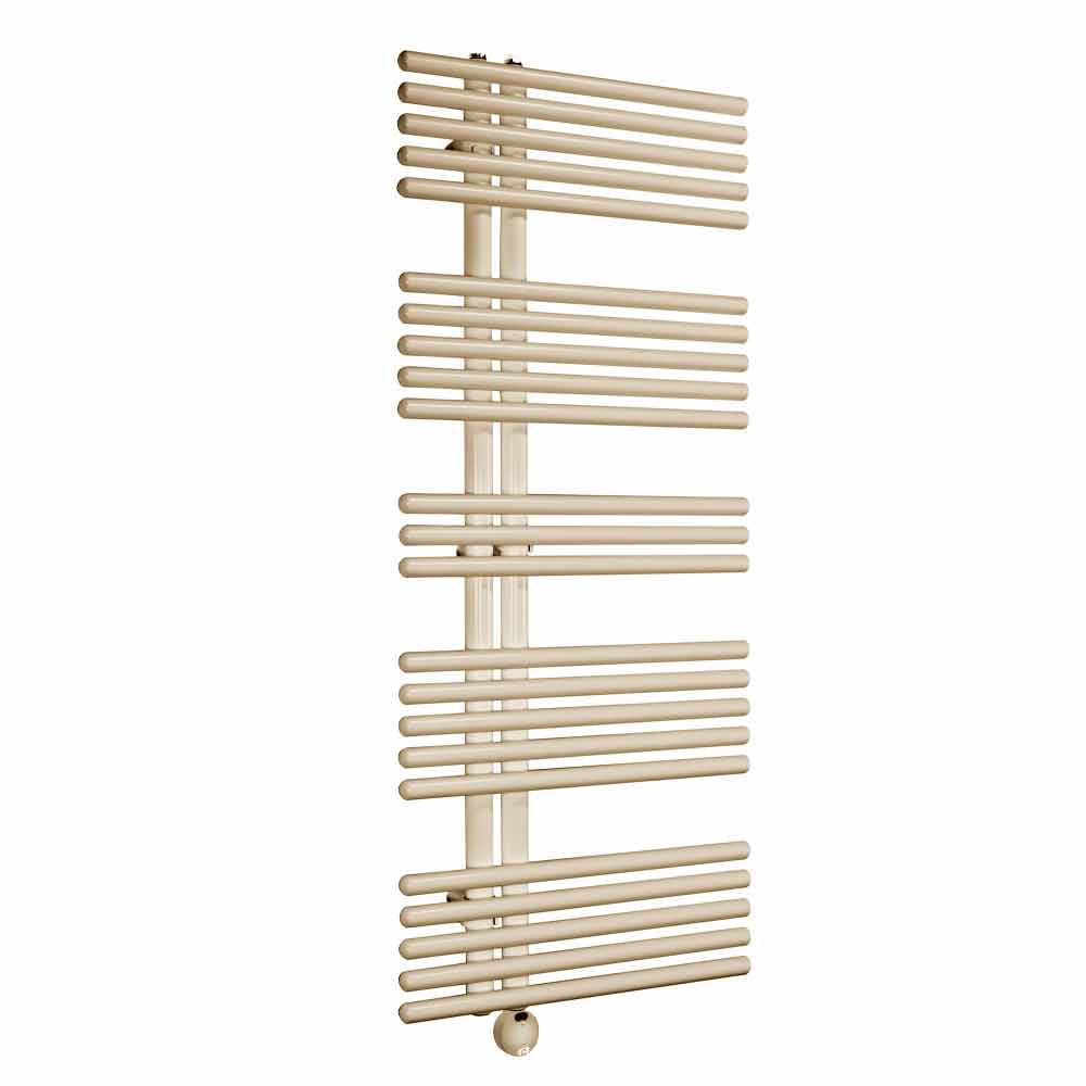 Denna elektriska handduksradiator har en design gjord med vertikala rör med en diameter på 35 mm och horisontella runda rör med en diameter på 25 mm. Dess moderna och speciella form gör den idealisk för att dekorera de senaste badrummen som ger en touch av originalitet.