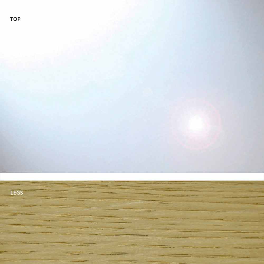 Tillverkad exklusivt i Italien med en bas i naturligt oljad och vaxig ek med hand och en formad topp i genomskinligt härdat glas med en tjocklek av 1,2 cm.