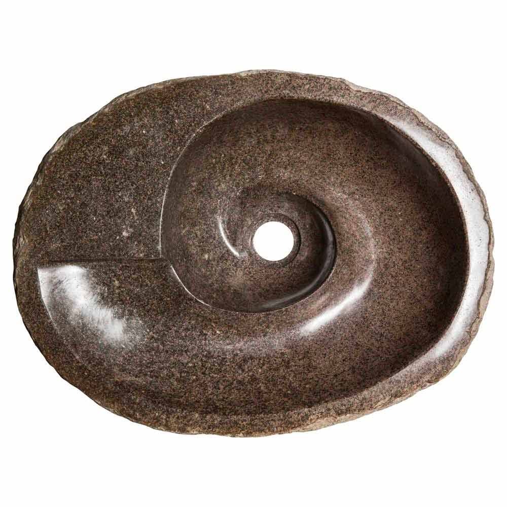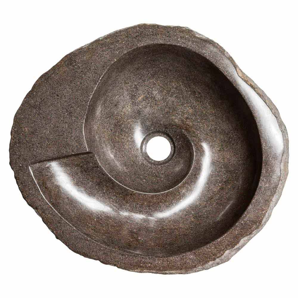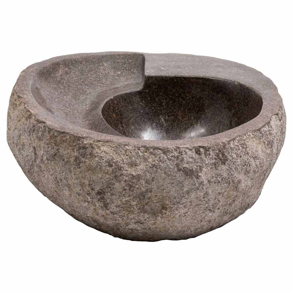 Busca är en fantastisk cirkulär tvättställ med en oregelbunden form handgjord i flodsten.
