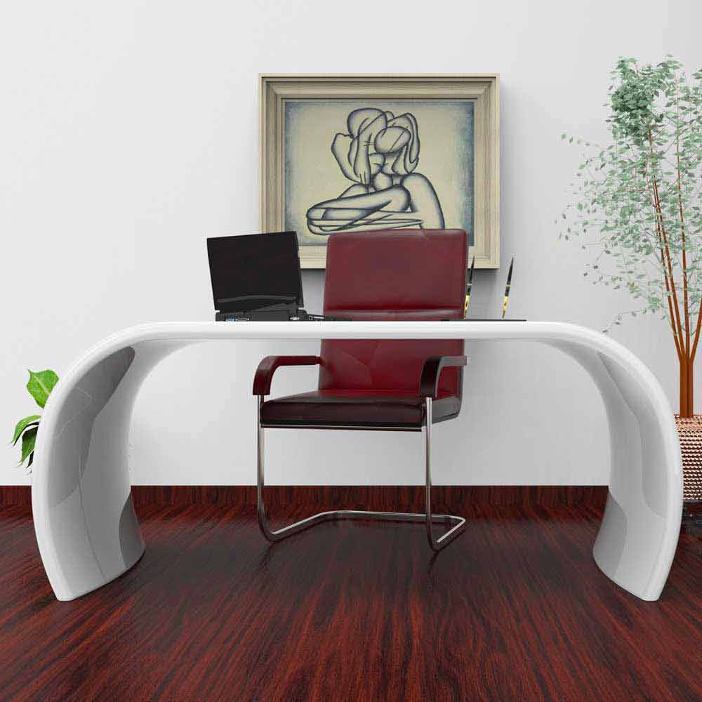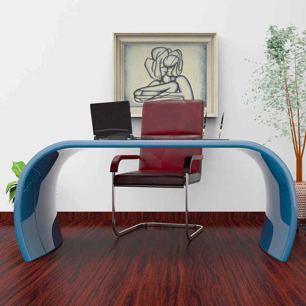 Detta skrivbord, tillverkat av Solid Surface, bryter tack vare sin böjda form monotomin på kontoret och ger oss en modern och vänlig miljö.
