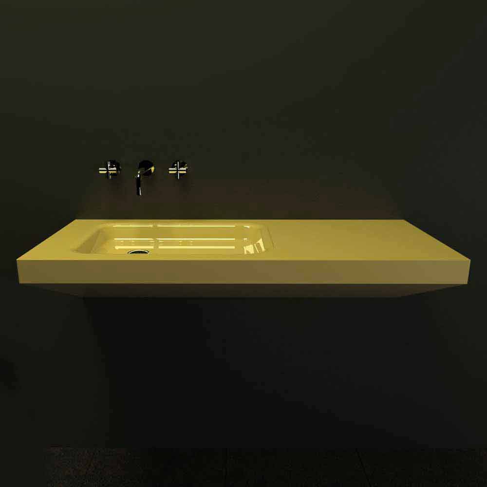 Formerna och det noggranna valet av material skapar ett materialspel och kromatiska kontraster som pryder husets wellnessavdelning, rena och avgörande linjer gör denna handfat till en designpjäs för badrummet.