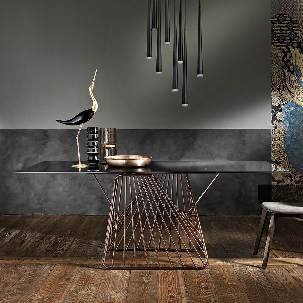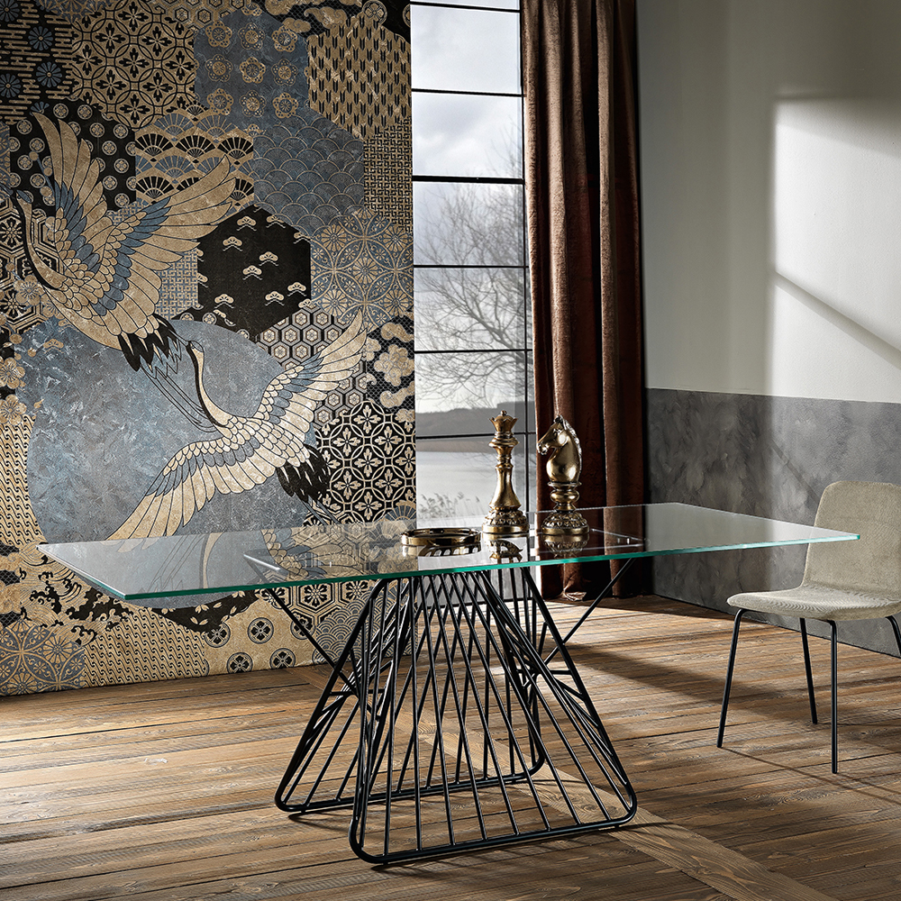 Mitia är ett fantastiskt fixat bord som upprättats i Italien med en målad metallbas och härdat glasyta (tjocklek 12mm).