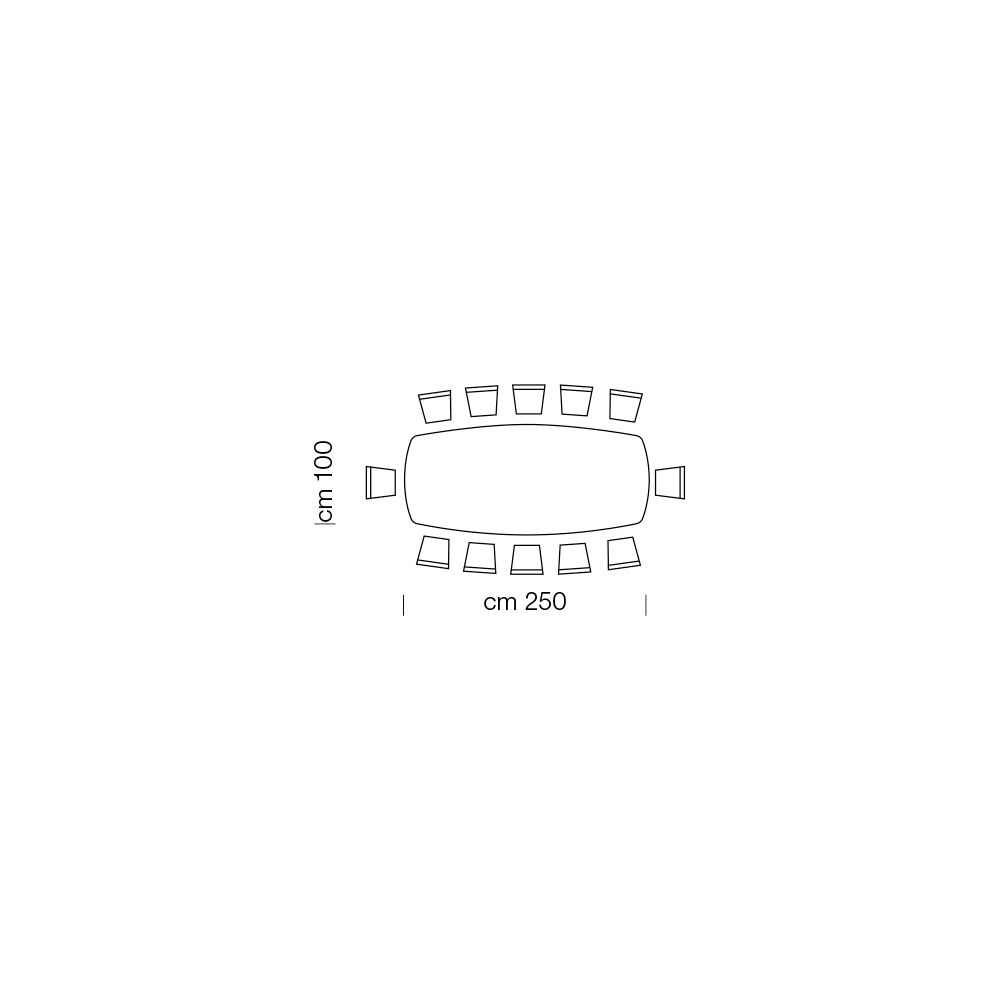 - L 250 x D 100 x H 73 cm 12 sittplatser.