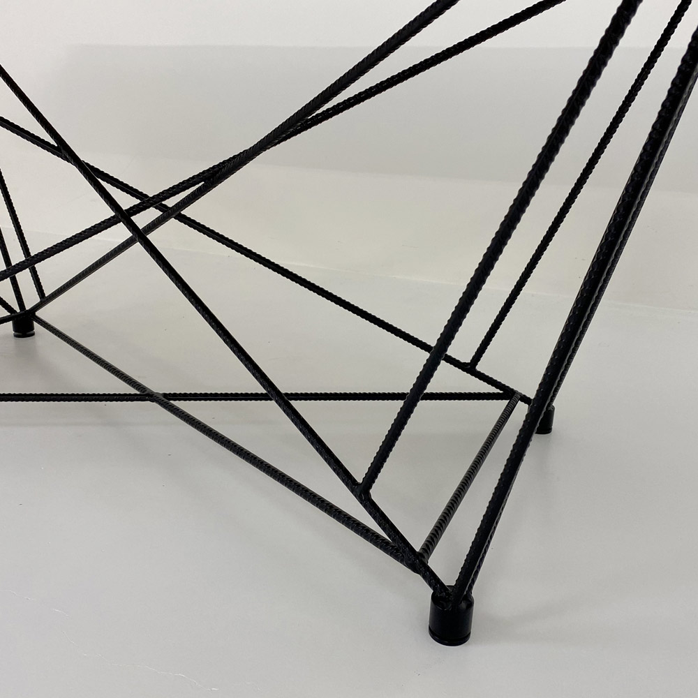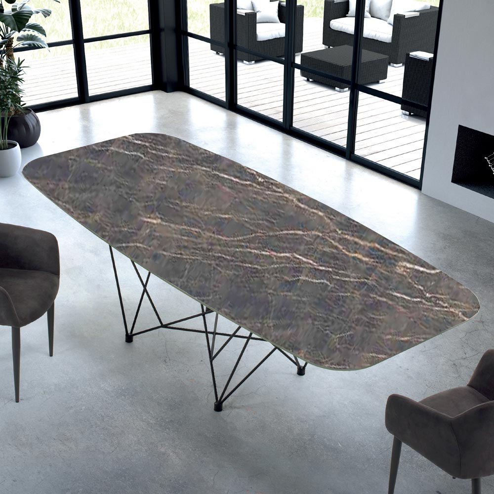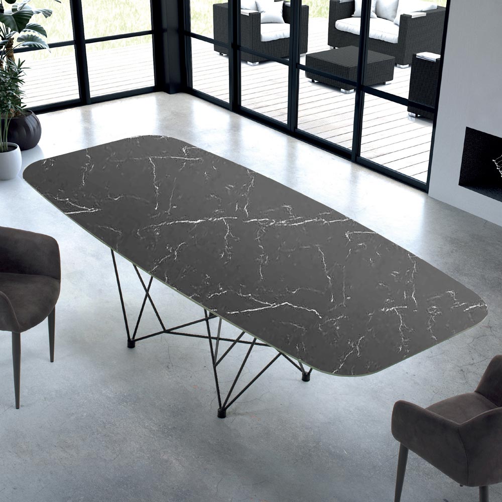 Tunnformat bord med keramisk skiva och svart stålfot tillverkat i Italien.