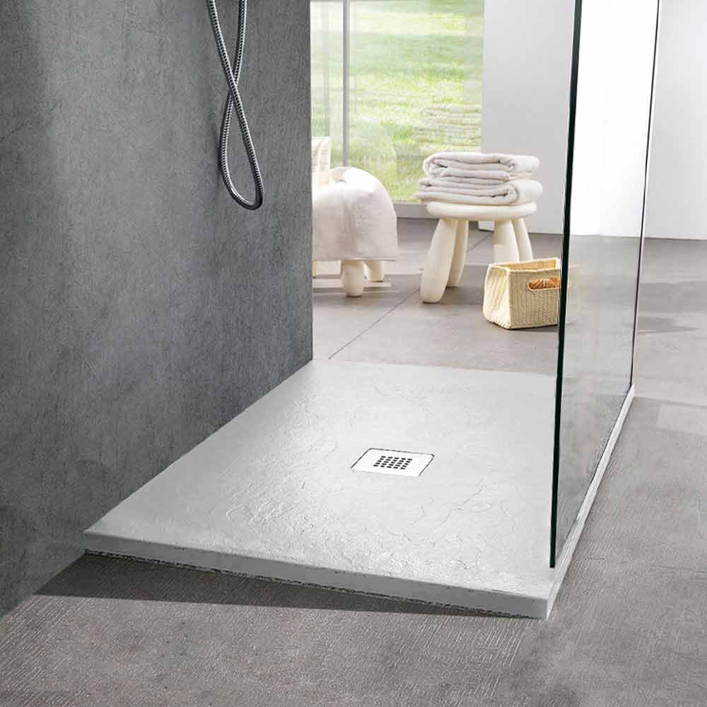Fyrkantigt duschkar 90x90 i vitt harts med stålnät.