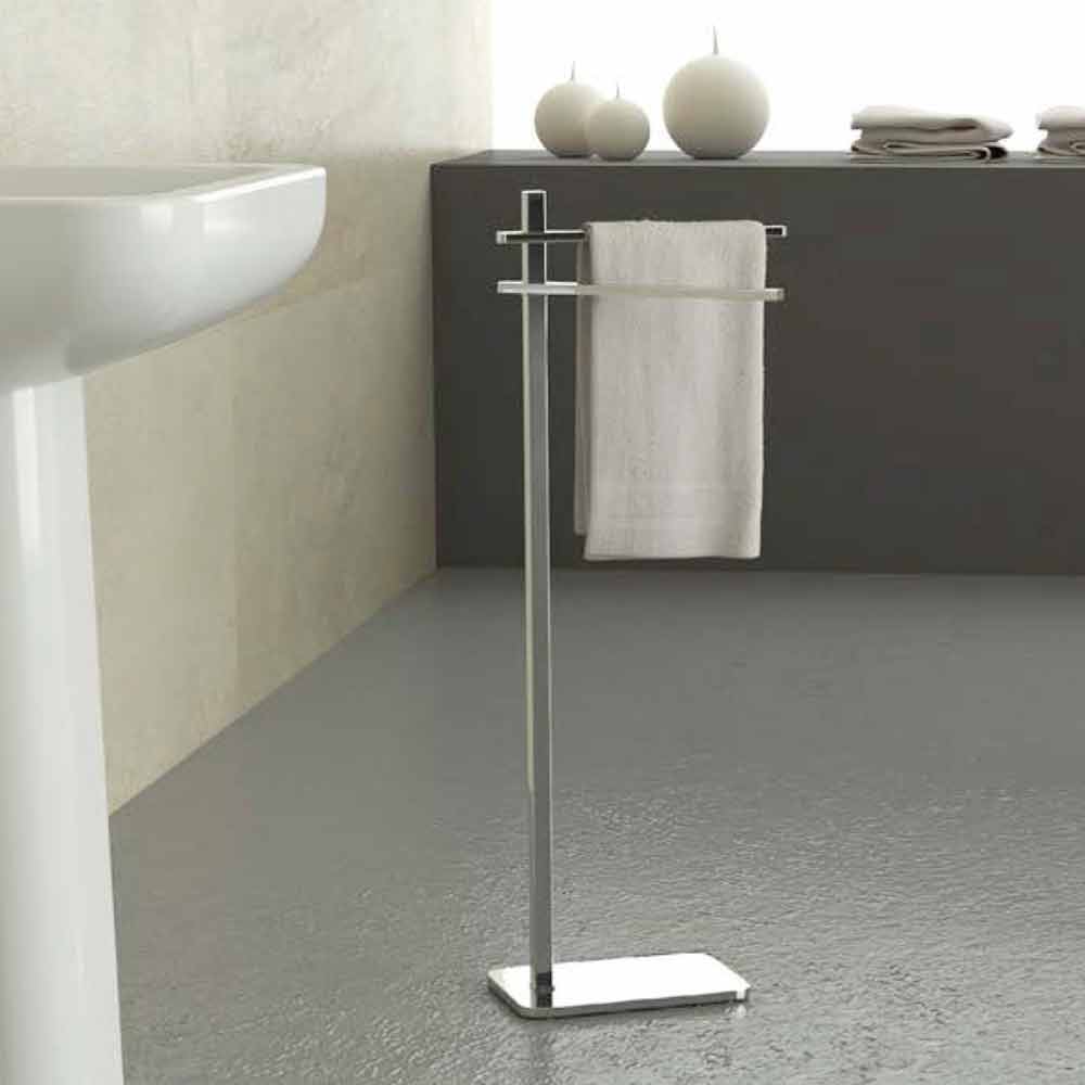 Golvlampa för handdukar tillverkad i Italien med 2-arms förkromad järnstruktur . Det som kännetecknas av mjuka och rundade linjer , det som gör detta inredningstillbehör med en raffinerad smak unik är dess omisskännliga enkelhet som understryker dess elegans och starka personlighet .