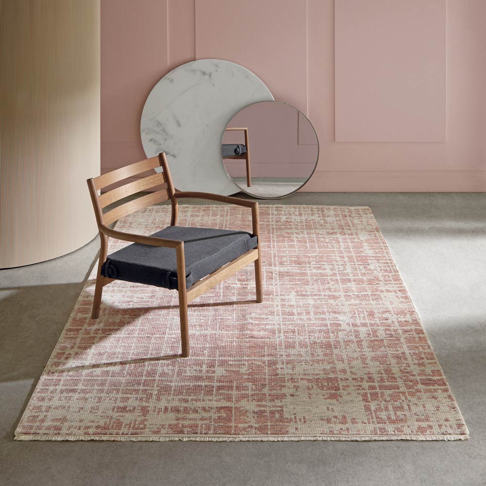 Modern handknuten matta för vardagsrum i bomull och ull.