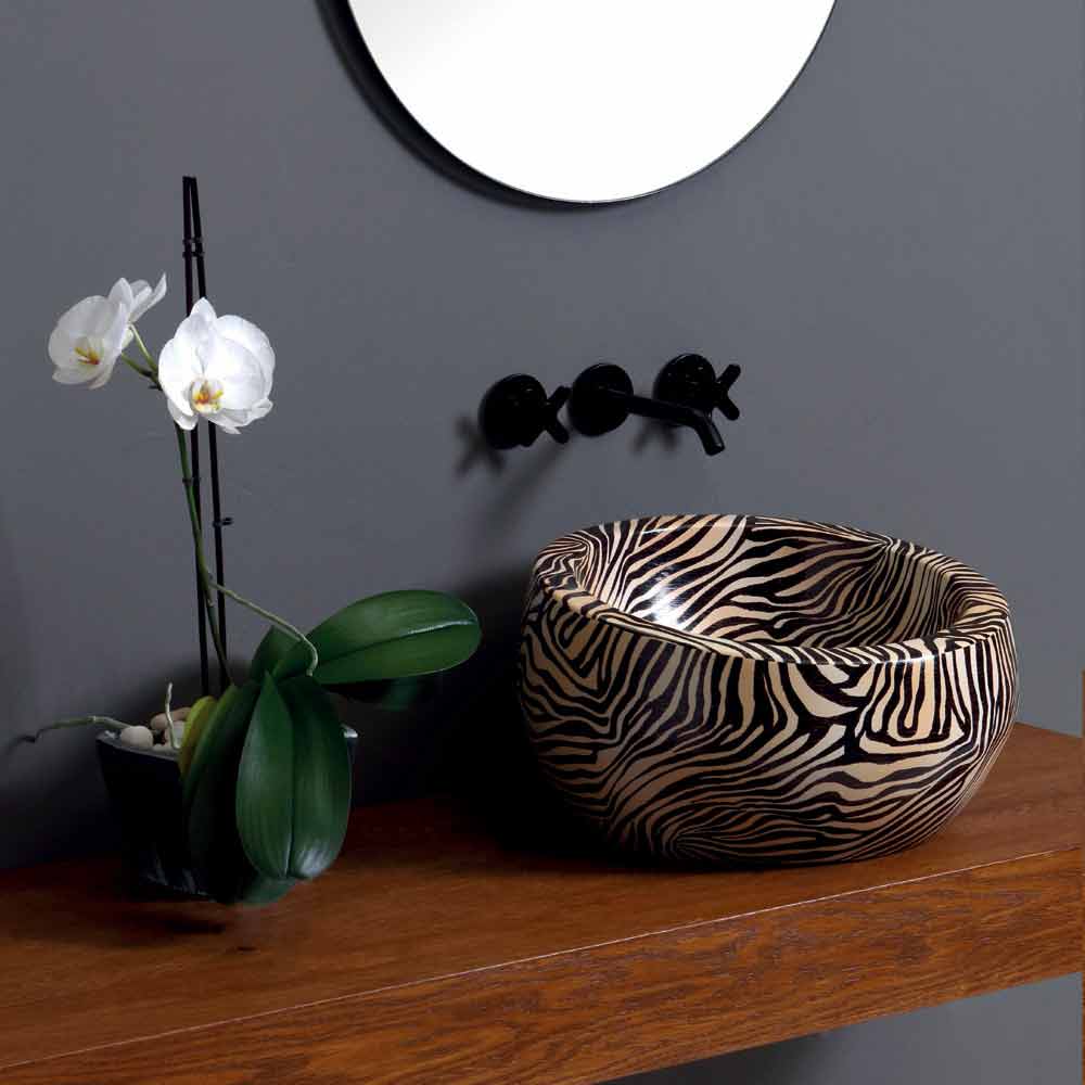 Handfat i cirkelformat keramiskt bänk tillverkat i Italien Elisa