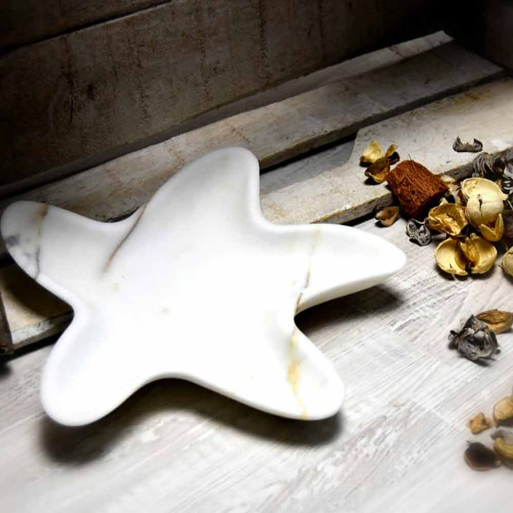 Sjöstjärnaformat tefat i satinmarmor av design i Made in Italy.