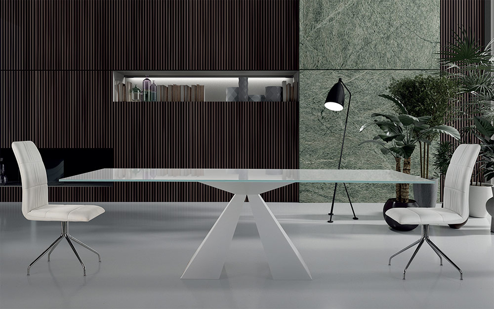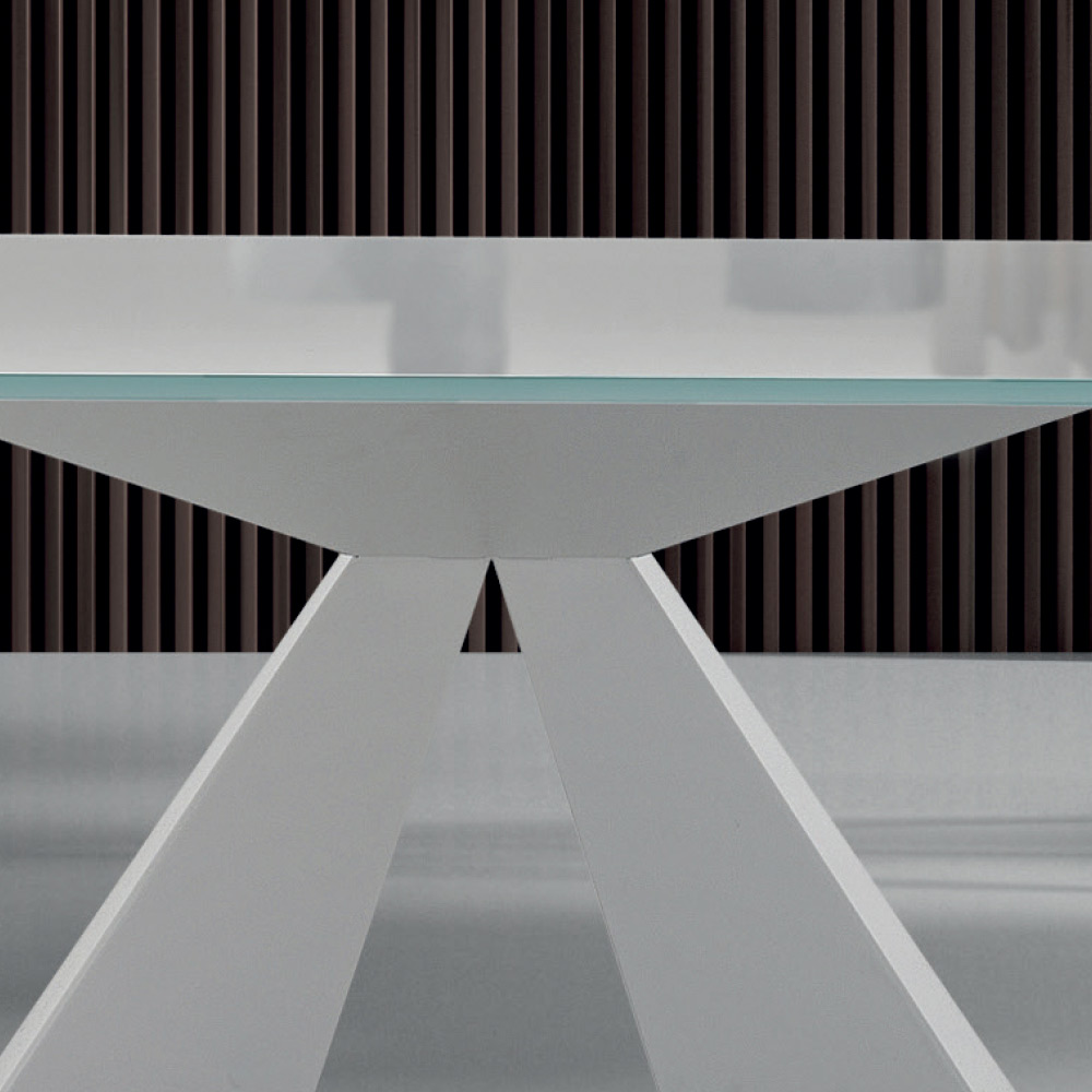 Modernt rektangulärt bord handgjort i Italien i härdat glas och vit stålbas.