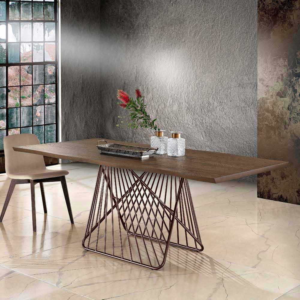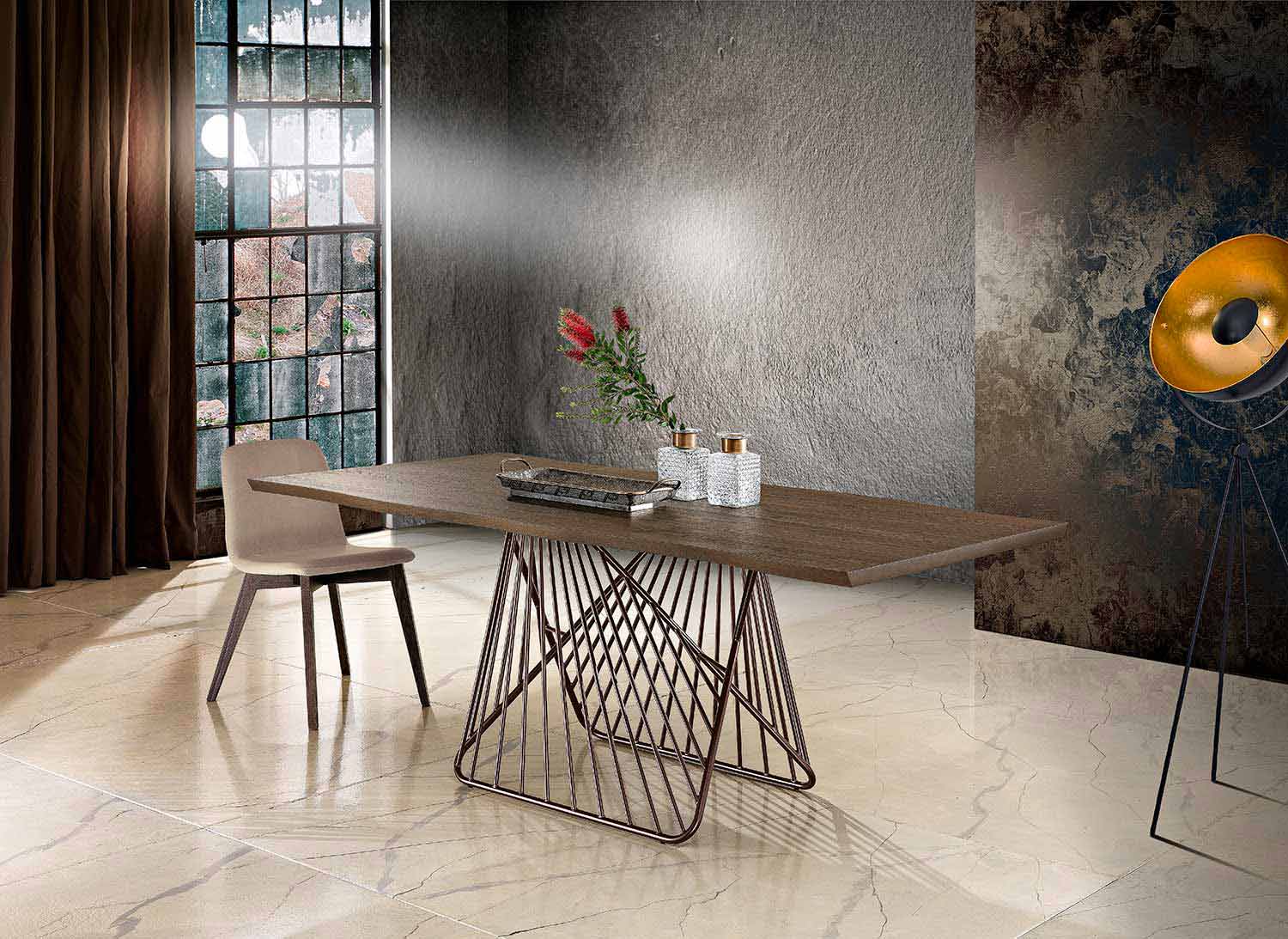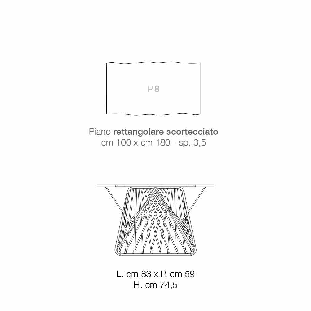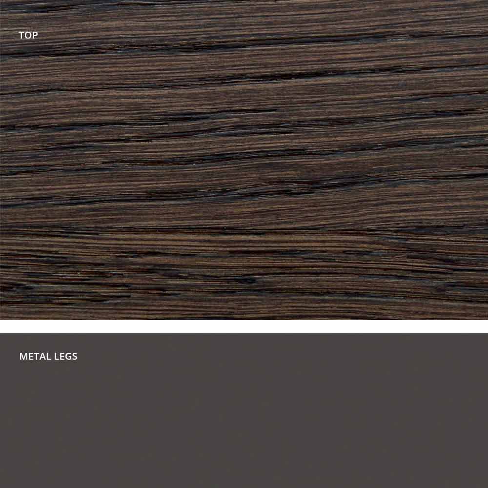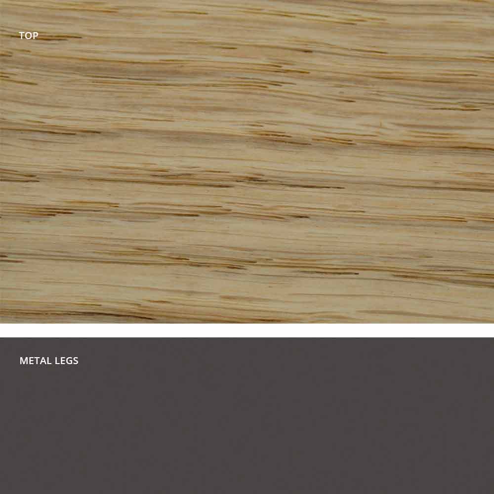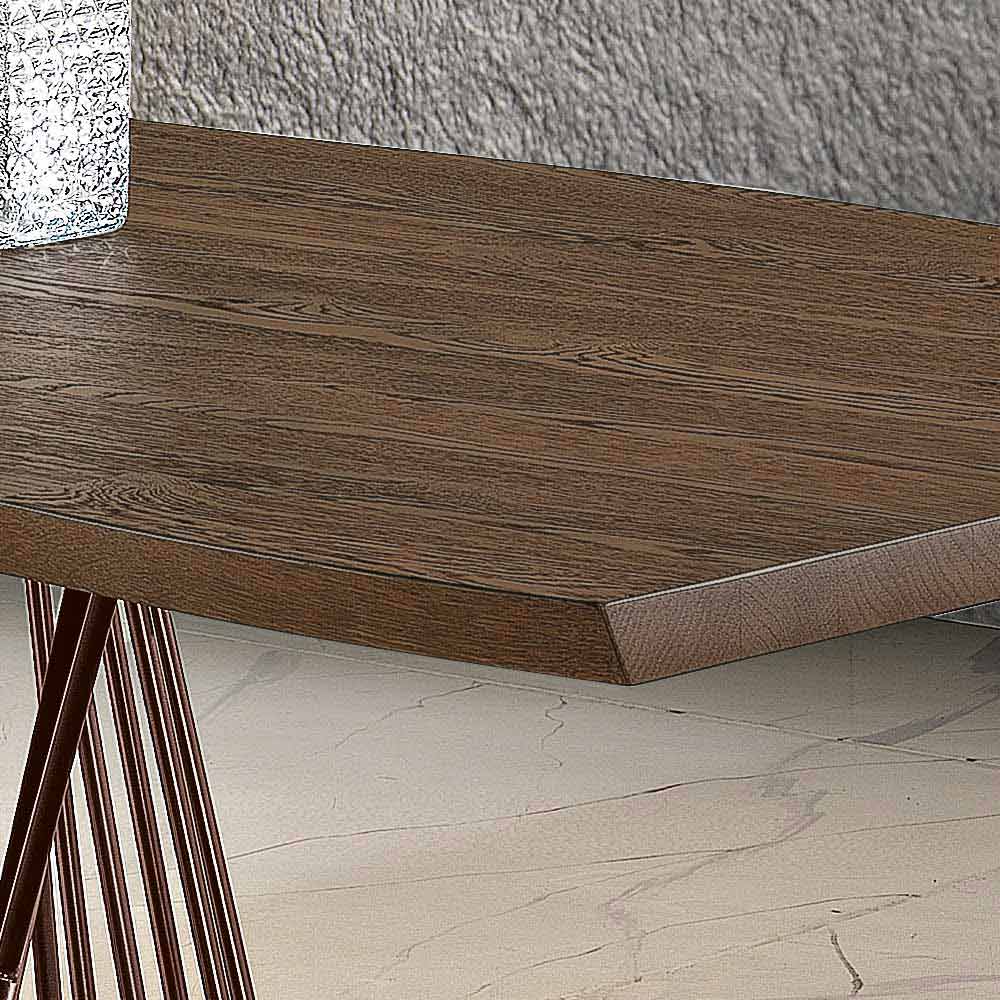 Mitia är ett fast bord som är uppbyggt i Italien med en målad metallbas och en massiv träpartikel yta (tjocklek 35 mm) finérad på långsidorna.