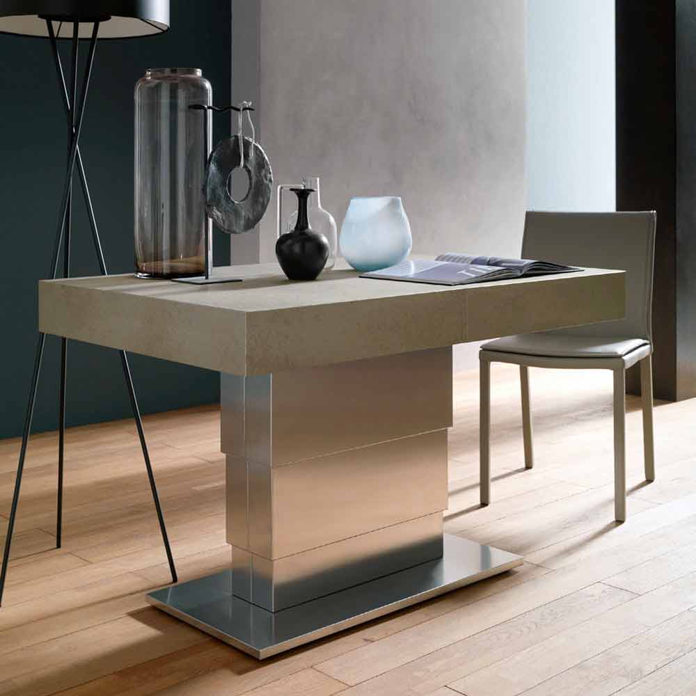 Soffbord som kan konverteras till ett matbord med skiva med murbrukseffekt Tillverkat i Italien.