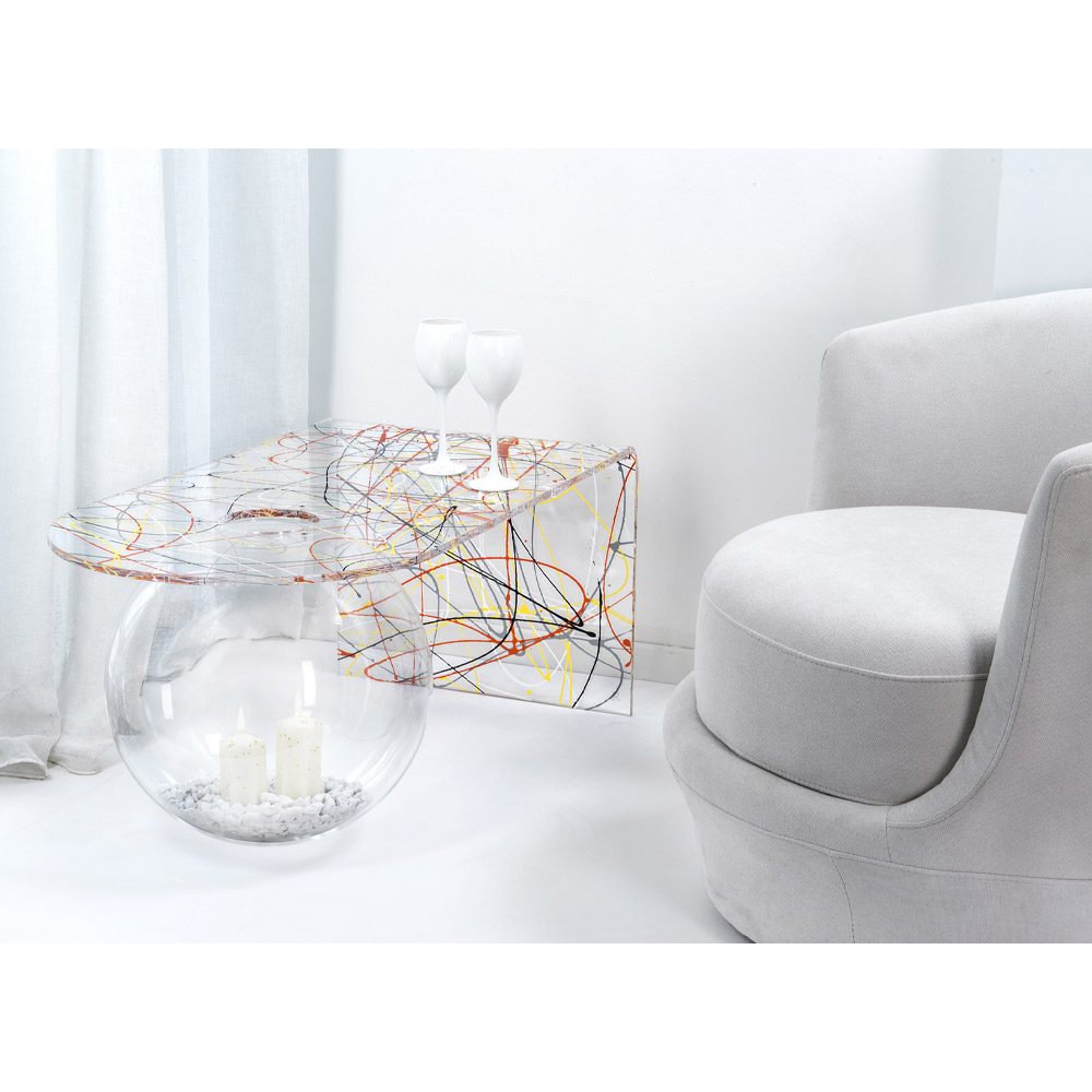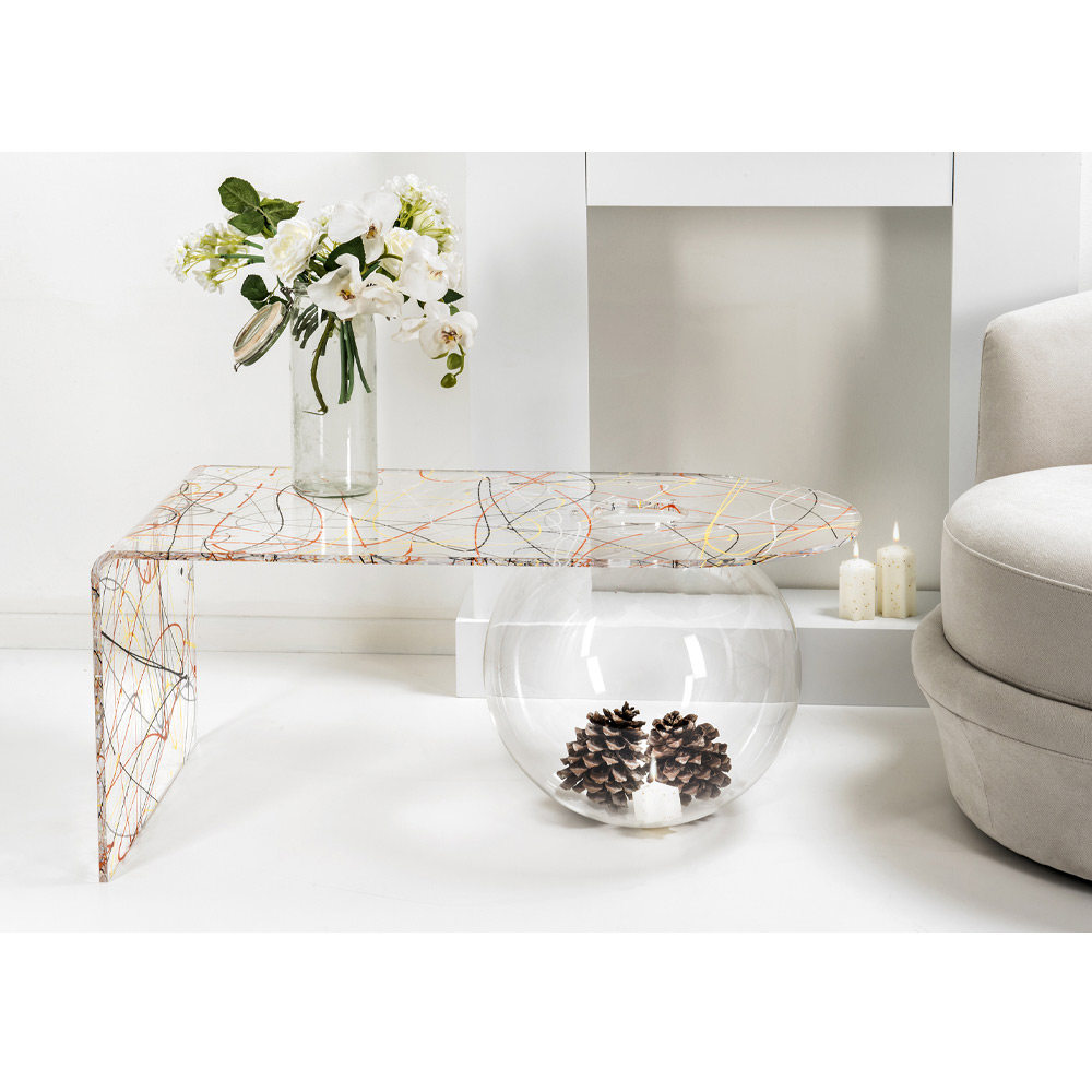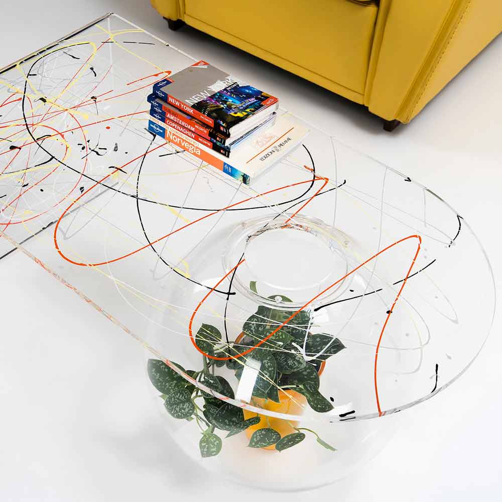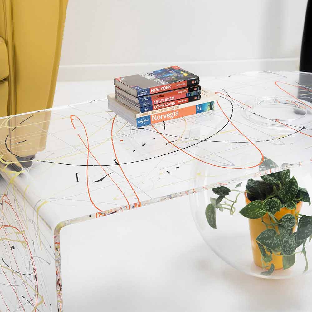 Bolly plexiglas soffbord i vardagsrummet, gjord i Italien