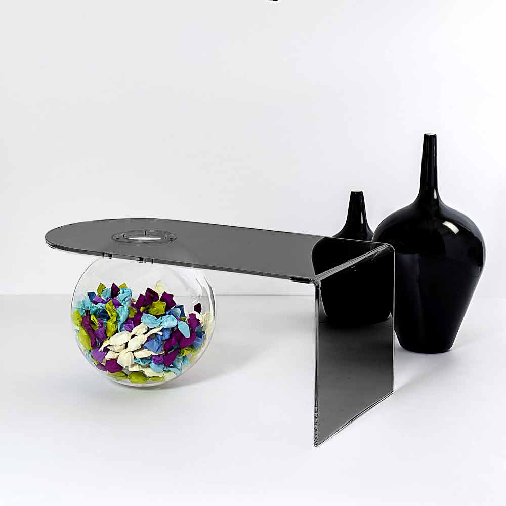 Bolly är ett brobord som är handgjord i Italien i 100% jungfrumpolymer PMMA-plexiglas, laserskärning, termoformad vid höga temperaturer och monterad i en sfärisk struktur som kan användas som en blomstervase, ett akvarium eller helt enkelt som en behållare.