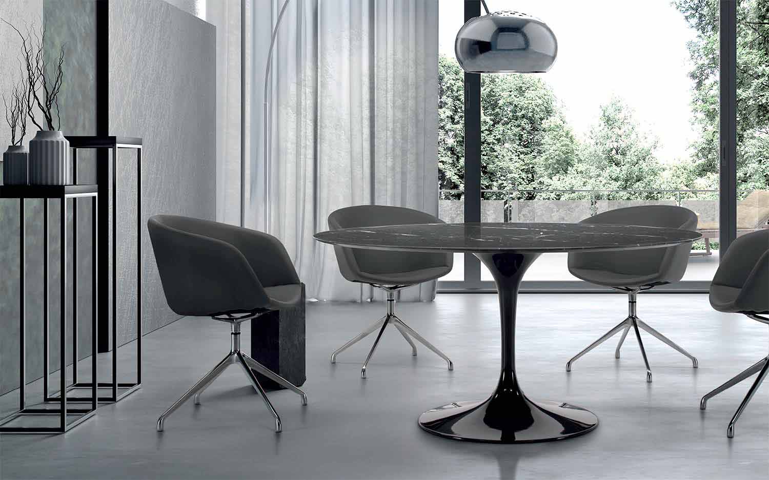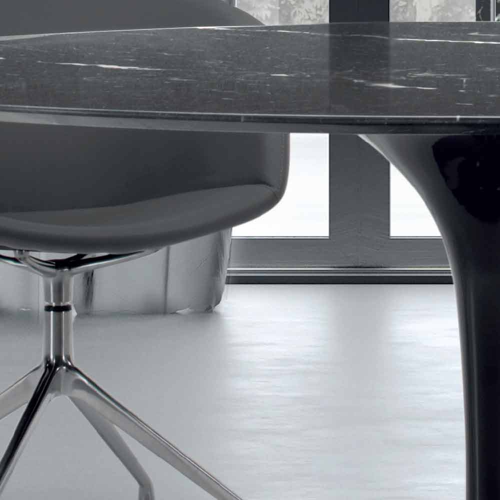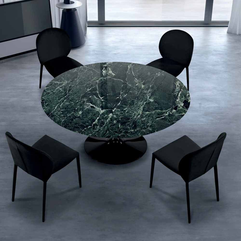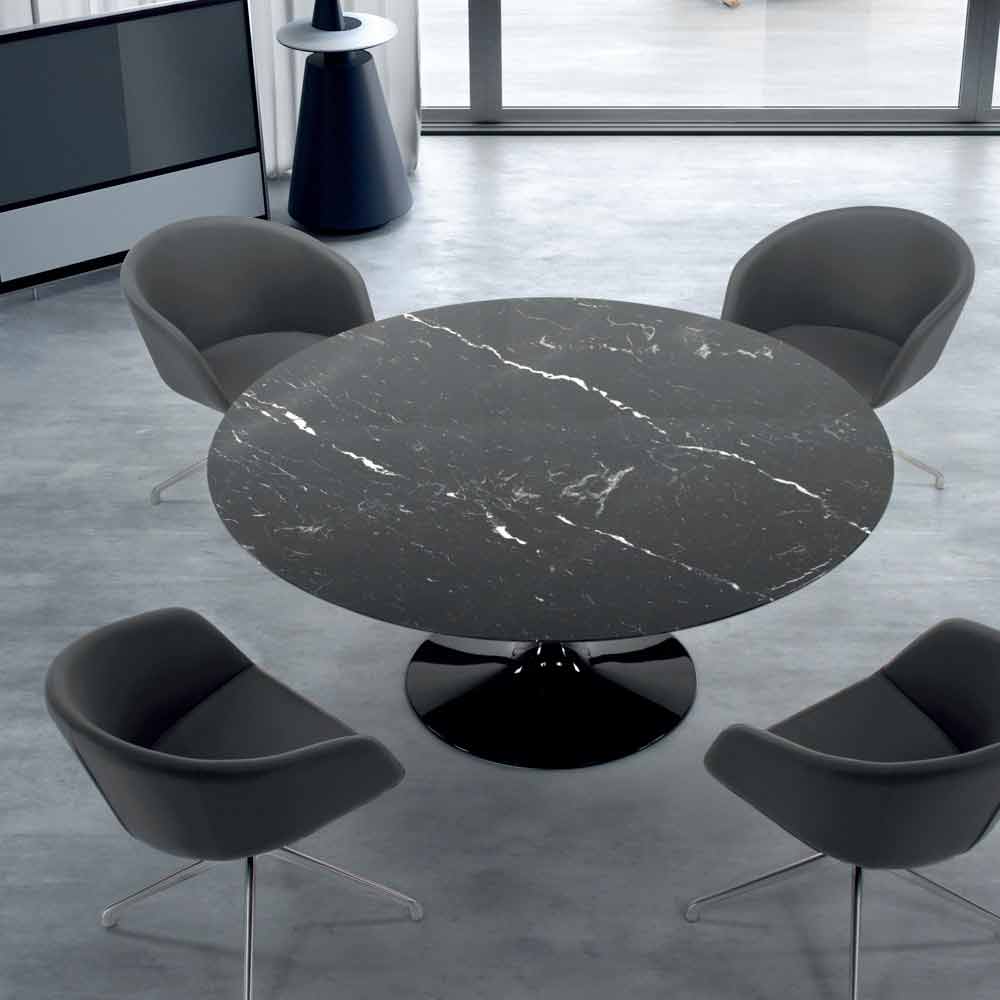 Modernt runt bord med Carrara eller Nero Marquinia marmorskiva handgjorda i Italien.