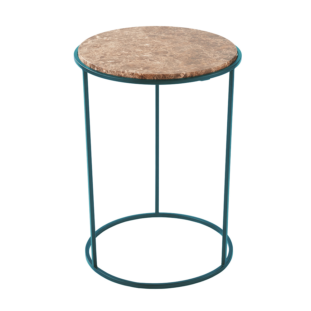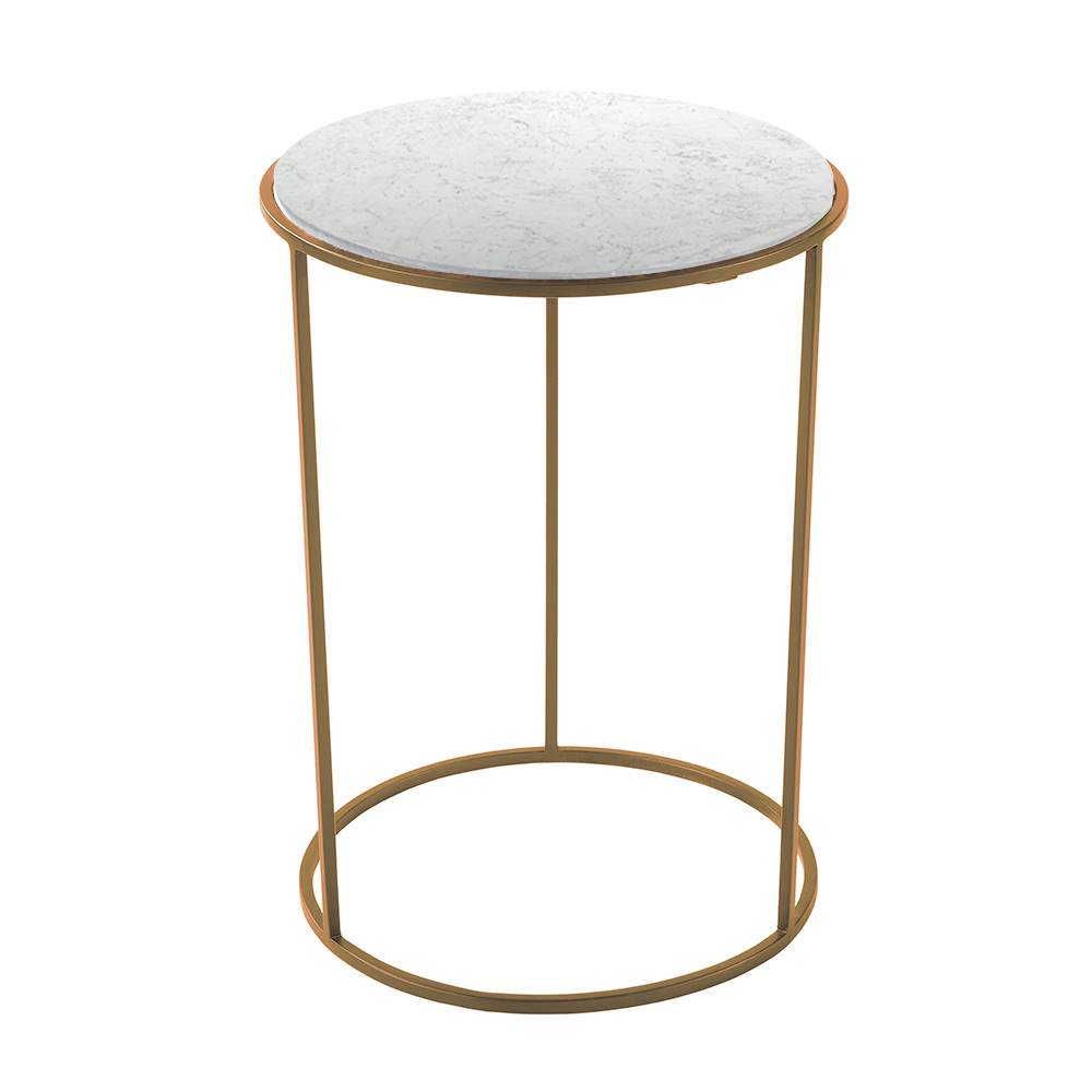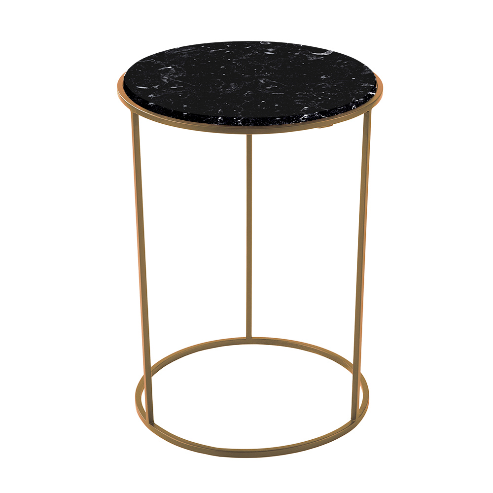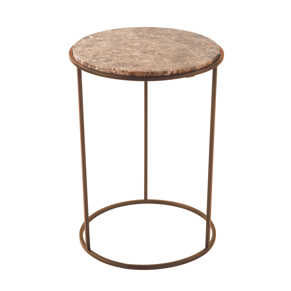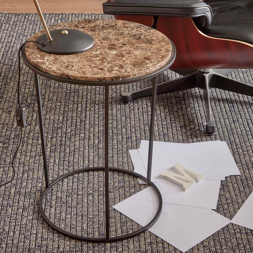 Runt vardagsrumsbord med marmorplatta i 3 ytor och metallbas, lyxartiklar tillverkade i Italien.