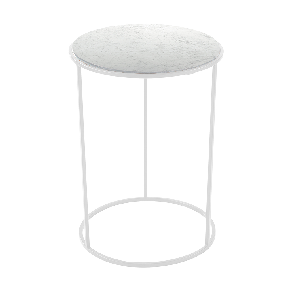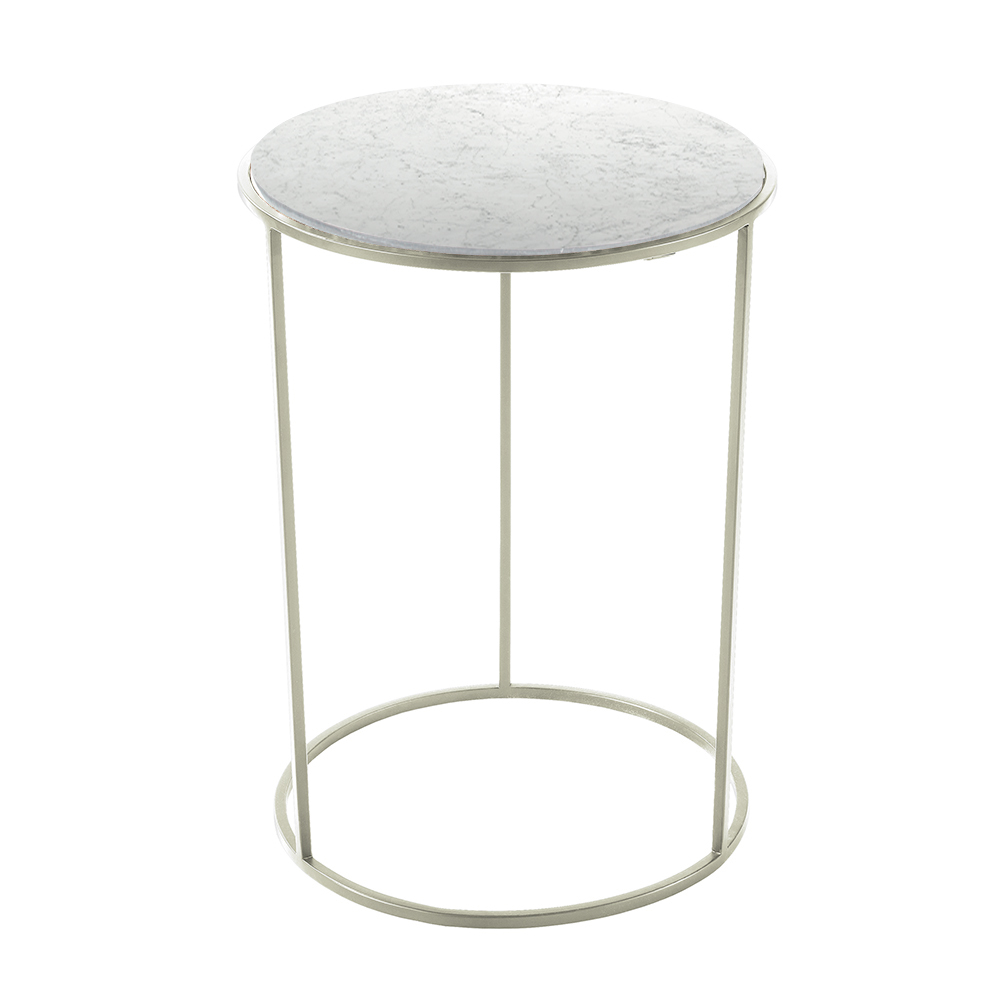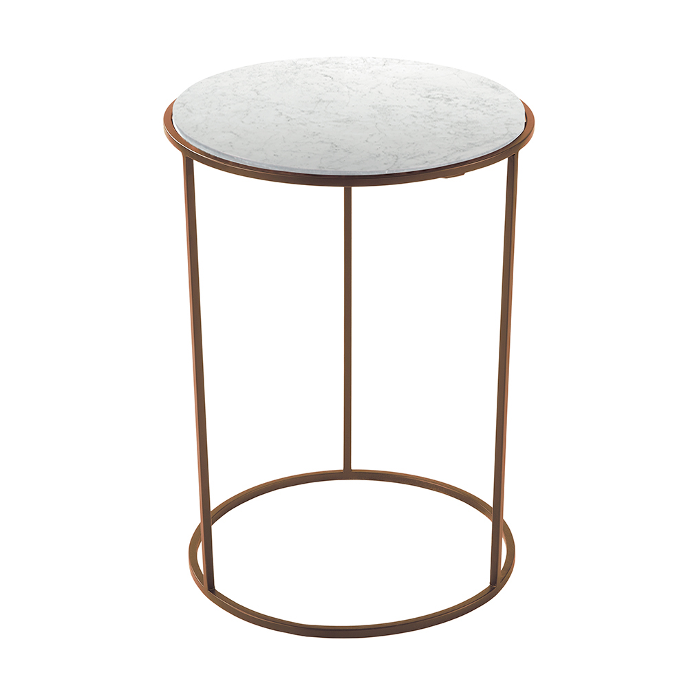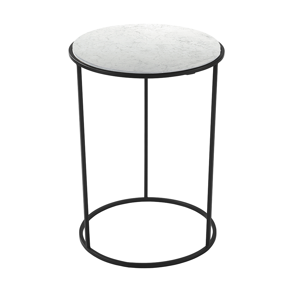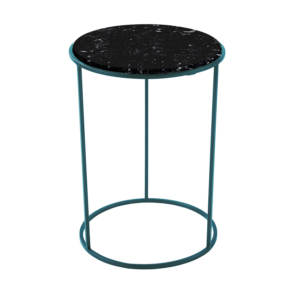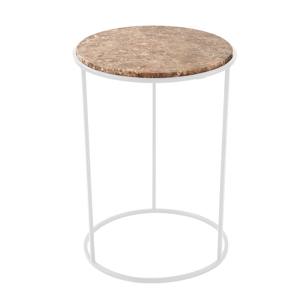 runda soffbord med ogenomskinlig marmorplatta, som finns i tre olika varianter, har minimala och väsentliga linjer. Den