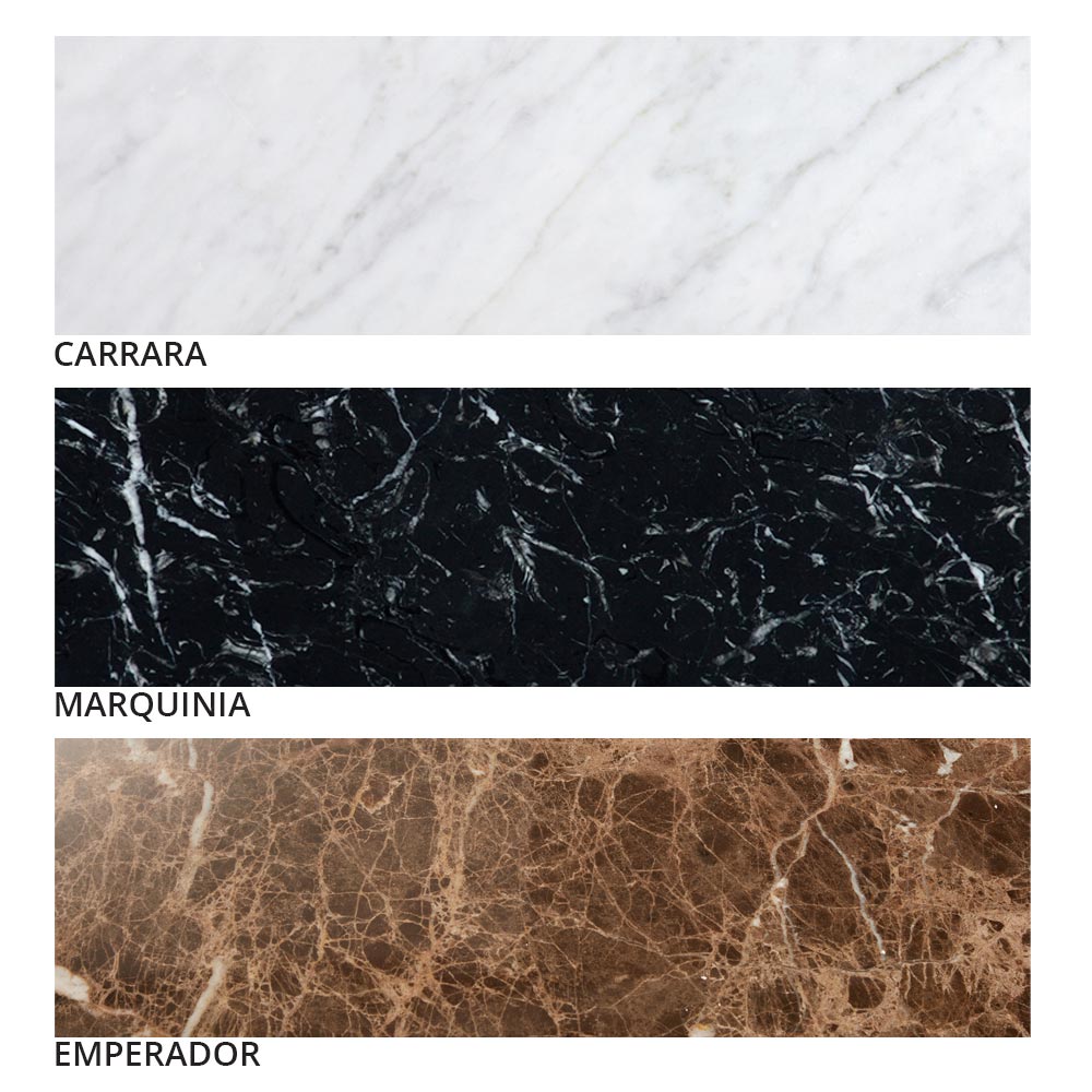 Finisher tillgängliga för marmortoppen:- svart Marquinia
