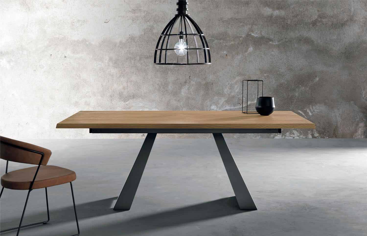 det utdragbara matbordet med sidoskjutbart passande för alla inredningssammanhang tack vare föreningen av trä med metall.