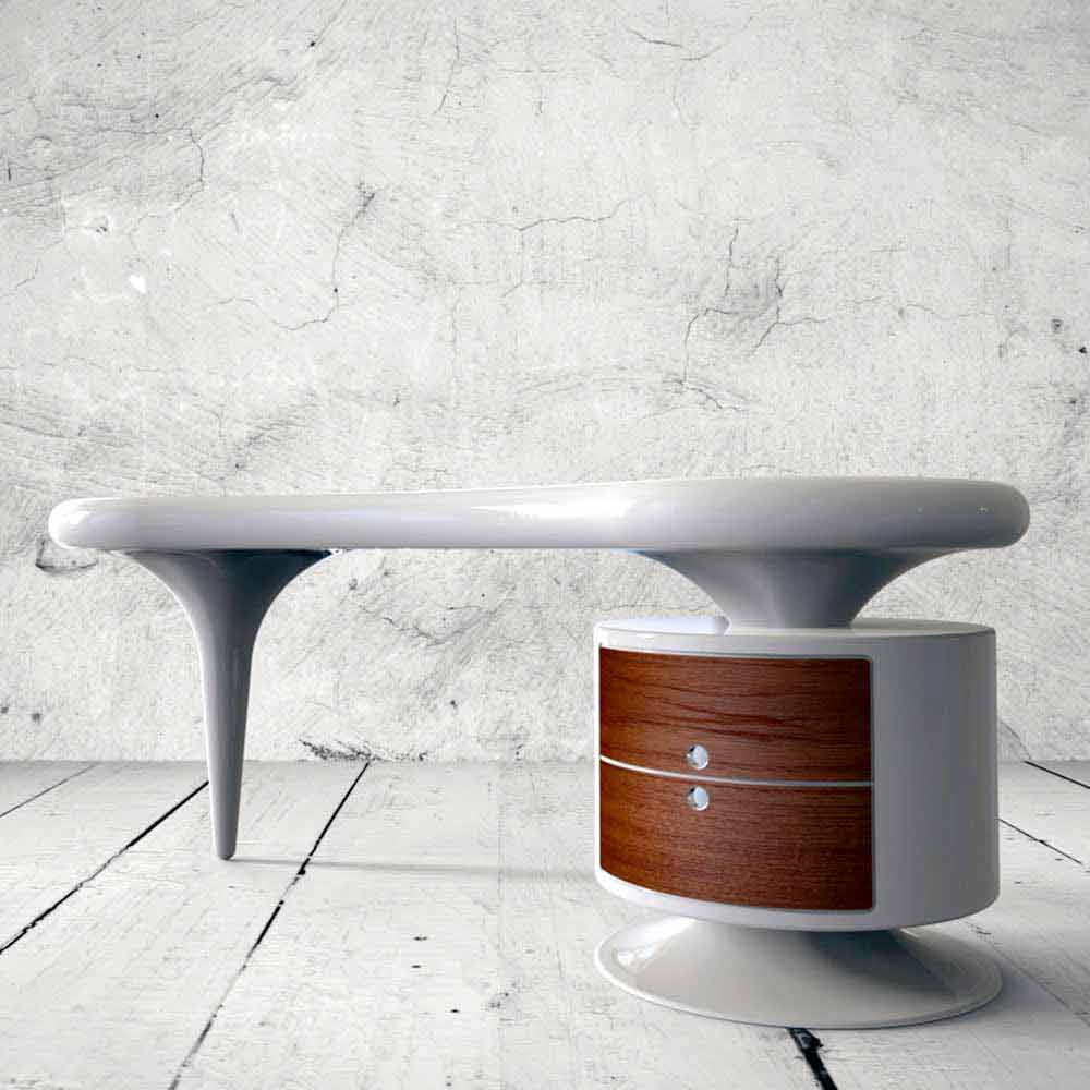 Den materiella kontrasten som ges av moderniteten hos Solid Surface; med träets "värme" och de rundade formerna ger de en retro touch till Bean-skrivbordet och anpassar sig till alla typer av miljöer.