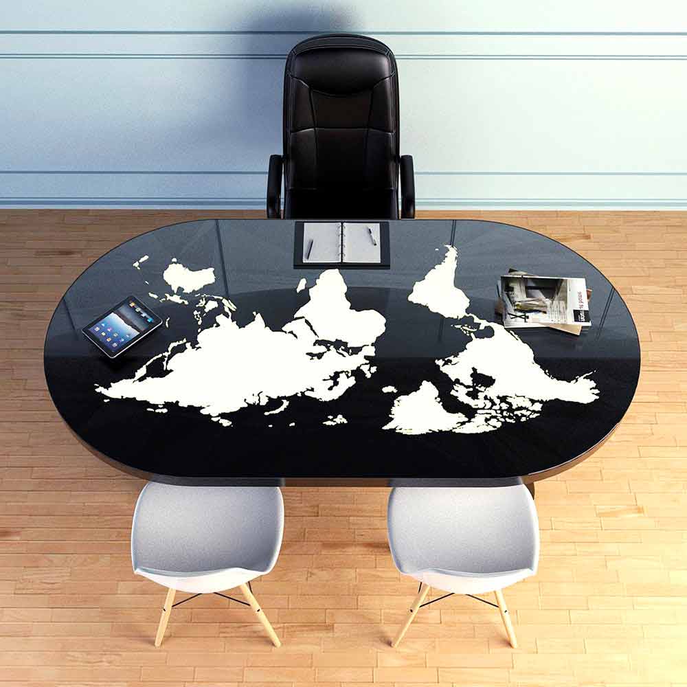 Pontida är ett skrivbordsbord med en ultramodern design; gjord av Solid Surface® och glasskiva där hela världen finns representerad som tack vare närvaron av lysdioder lyser upp och ändrar färg som du vill.