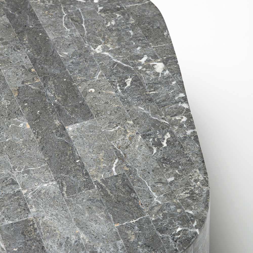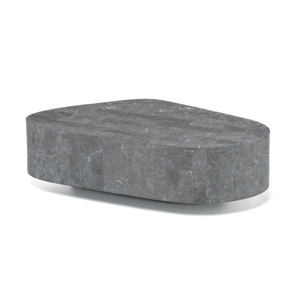 Den fossila stenen skärs för hand, i form av små plattor, av skickliga hantverkare som sedan applicerar dem en i taget, som om de komponerade en mosaik på en marin plywoodstruktur eller på en glasfiberform.