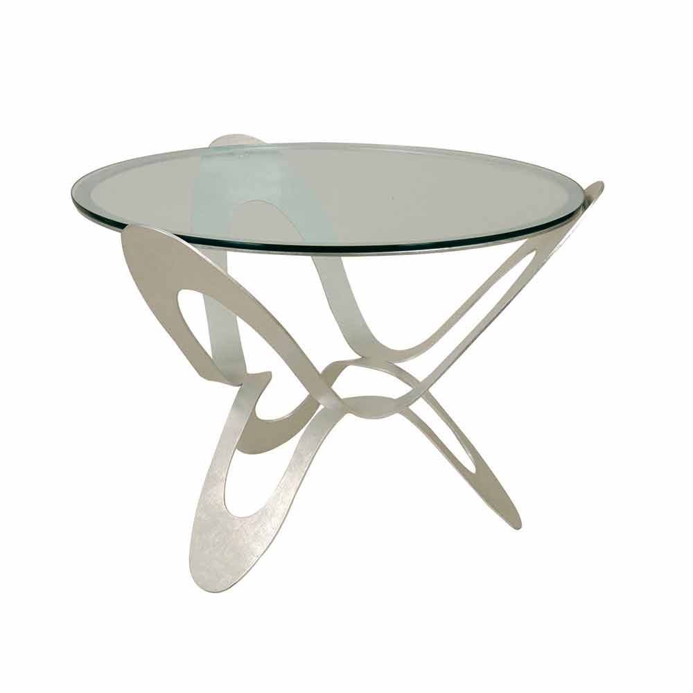 Lågrunda soffbord tillverkade i Italien handgjorda i glas- och guld- eller silverbladjärn.