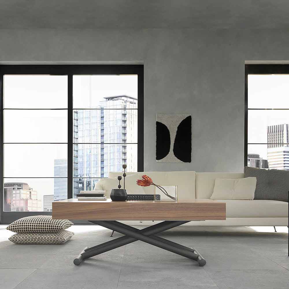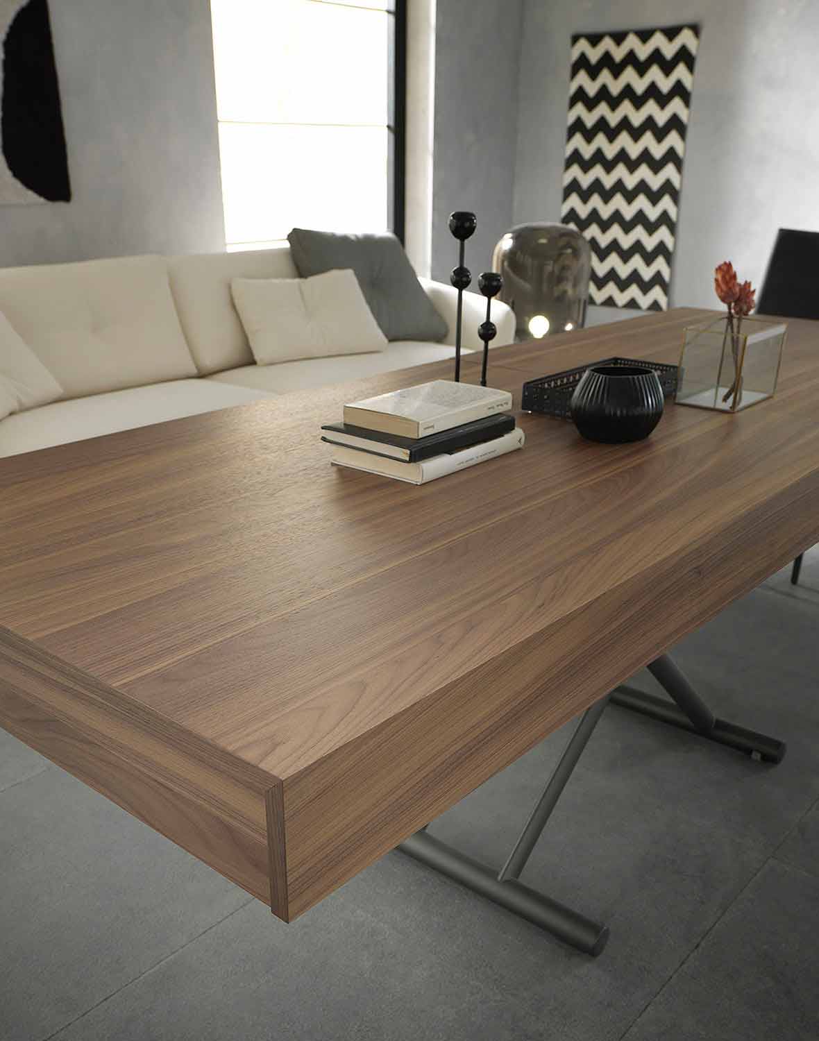 transformerbara soffbord kännetecknas av eleganta och väsentliga linjer som ackompanjerar en mångsidig design som lämpar sig för att inreda alla miljöer.