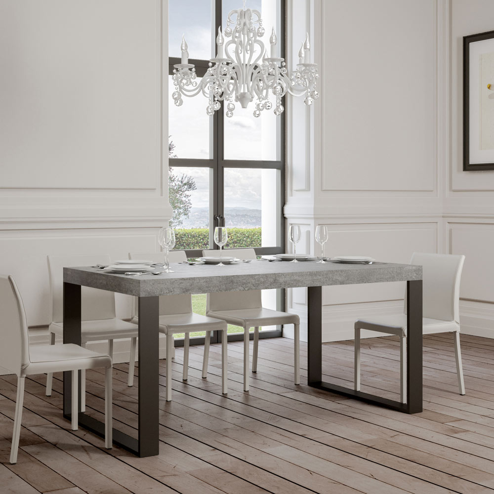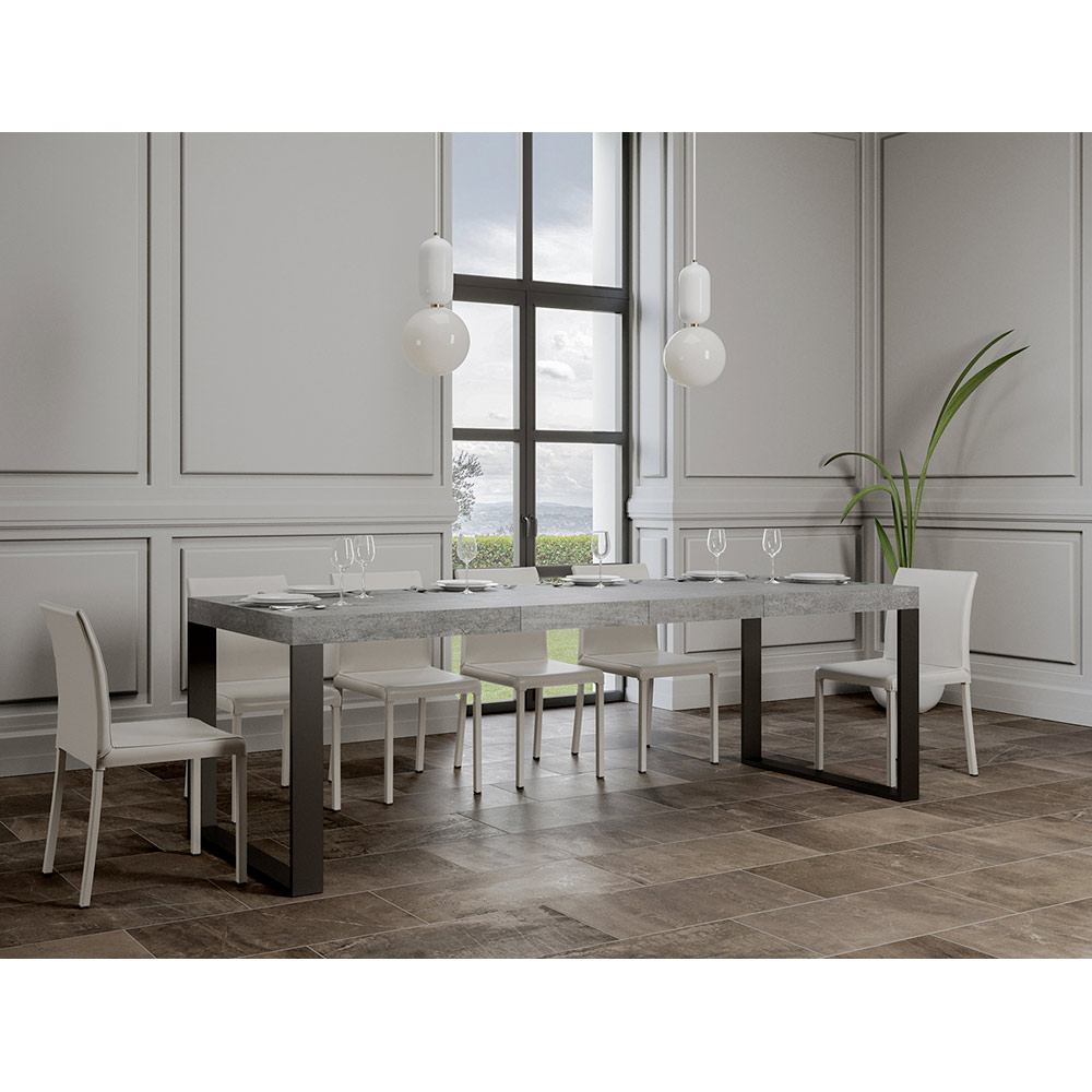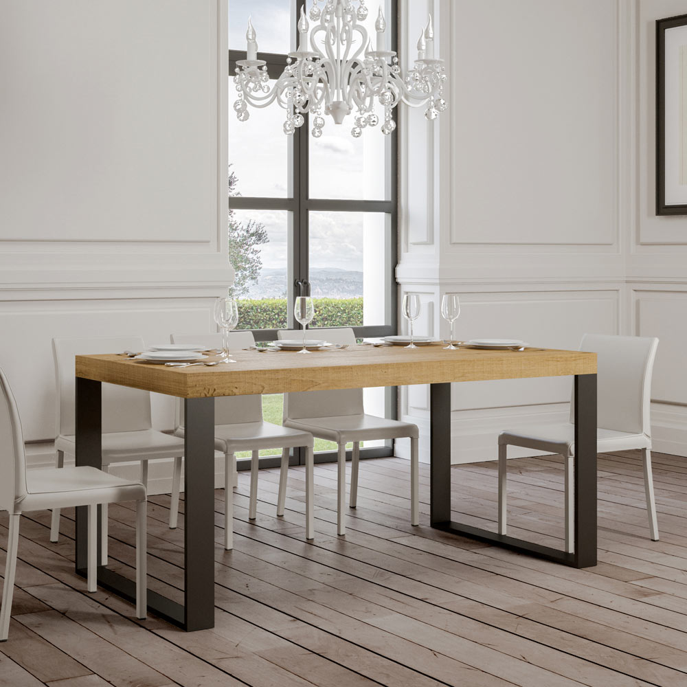Upptäck kärnan i design med detta utdragbara bord, ett mästerverk av flexibilitet och stil. Den starka järnstrukturen passar vackert ihop med träskivan, en kombination som lovar att ge en touch av modern elegans till alla utrymmen.