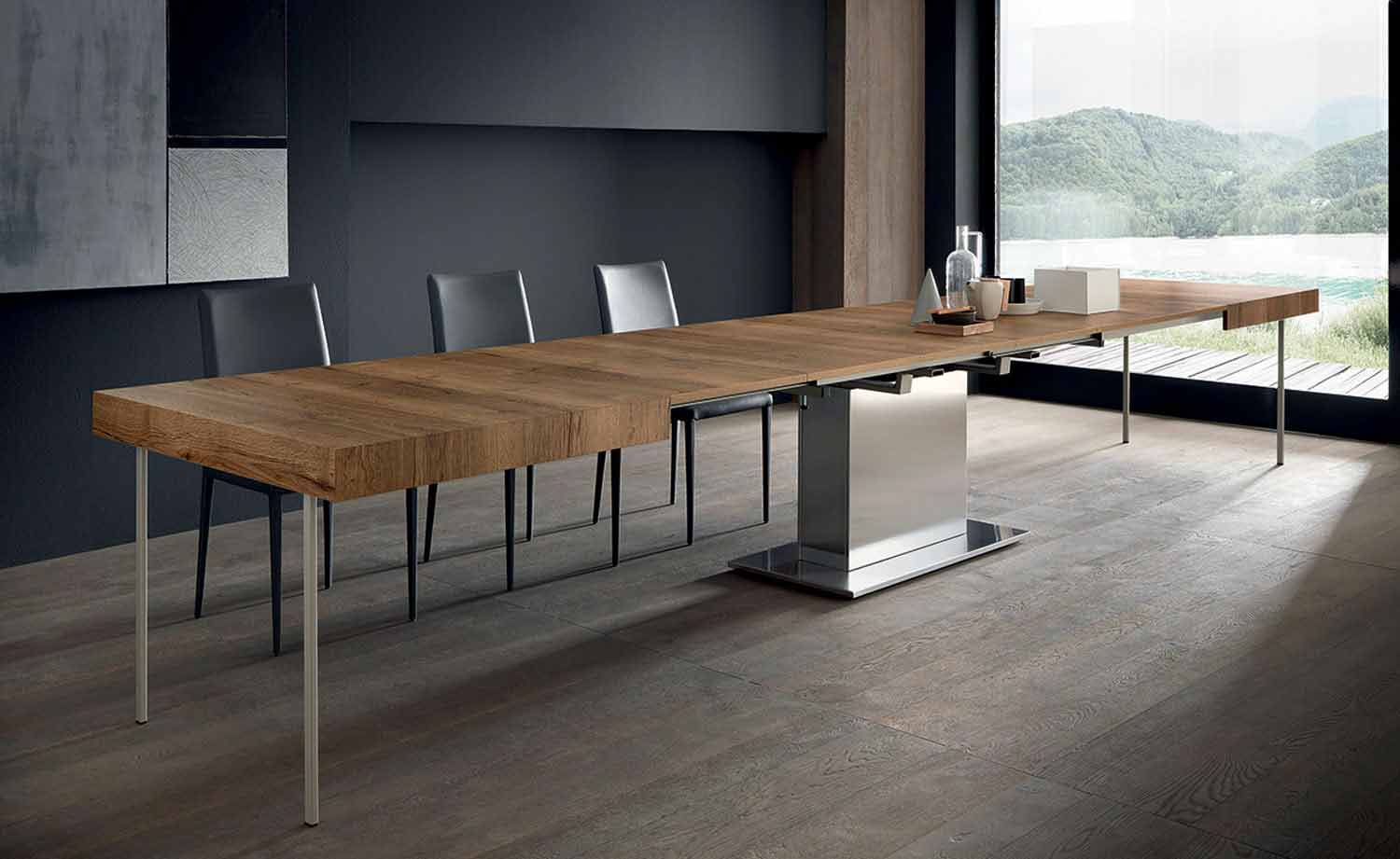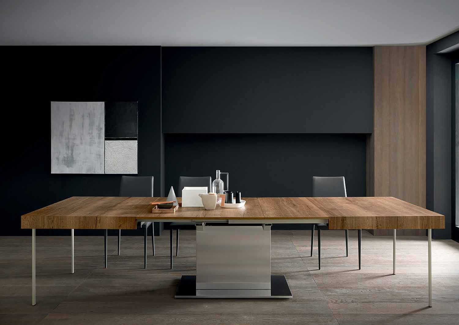 utdragbara bord utmärks av en liten och diskret design för vardagsrumsversionen, men som vet hur man förvånar och ger stora känslor i den öppna versionen.