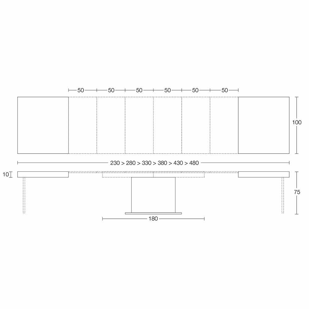 Utdragbart matsalsbord med skiva i melaminträ och metallunderrede Made in Italy.