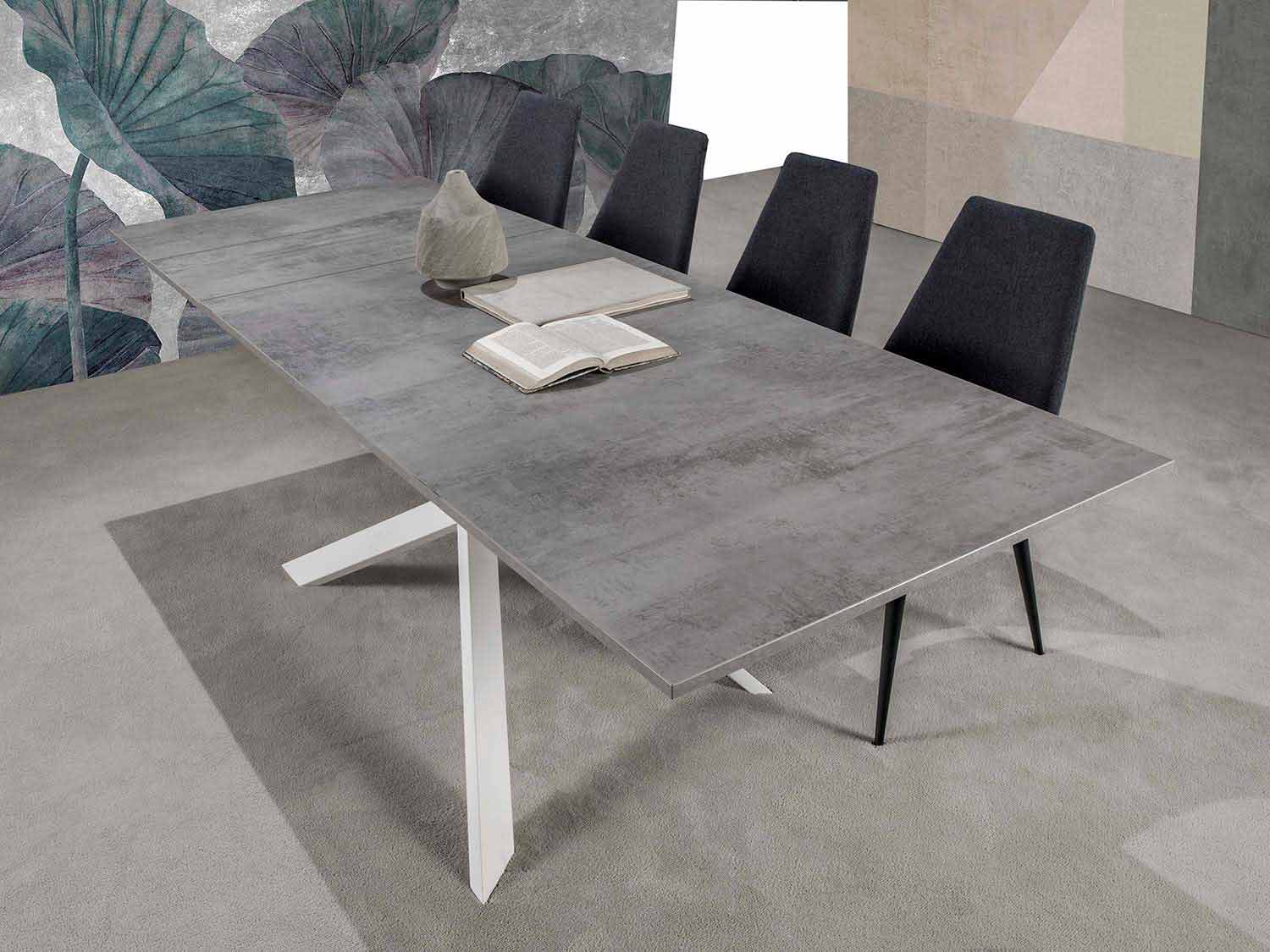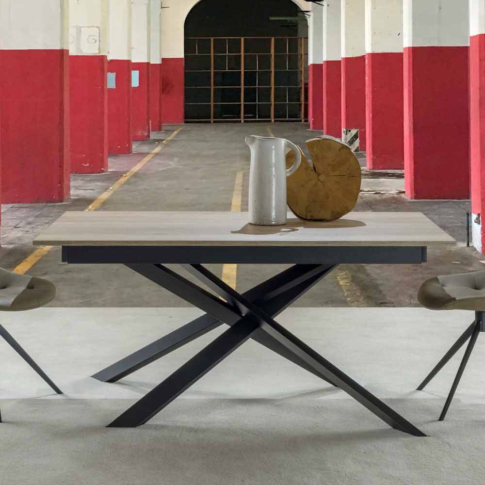 en öppning upp till 270 cm. Benen på denna produkt speglar dess identitet, med denna sammanflätning mellan dem. Materialet som används är