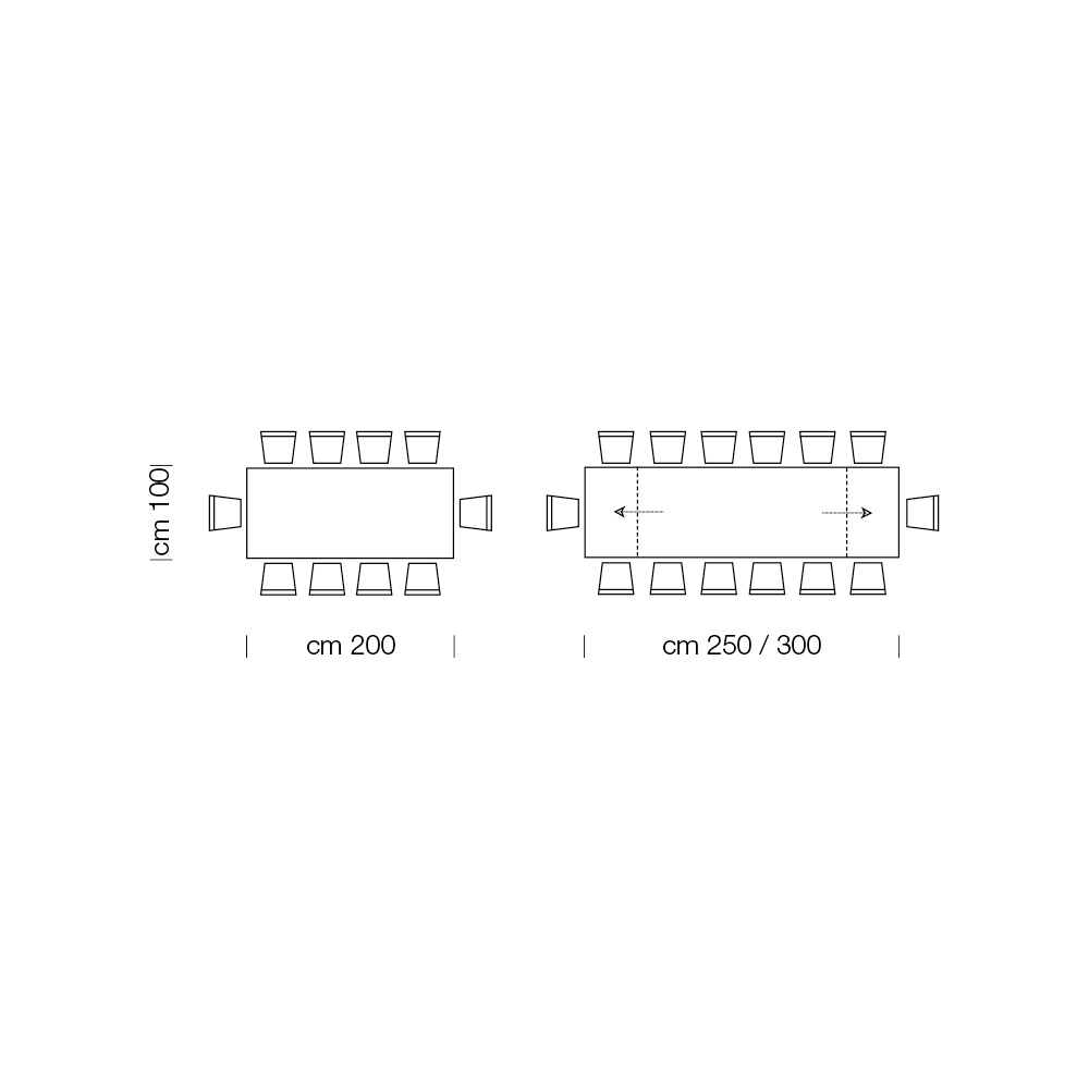 - L 200 (300) x D 100 x H 76,5 cm 14-sits utdragbar med två 50 cm utvändiga förlängningar.