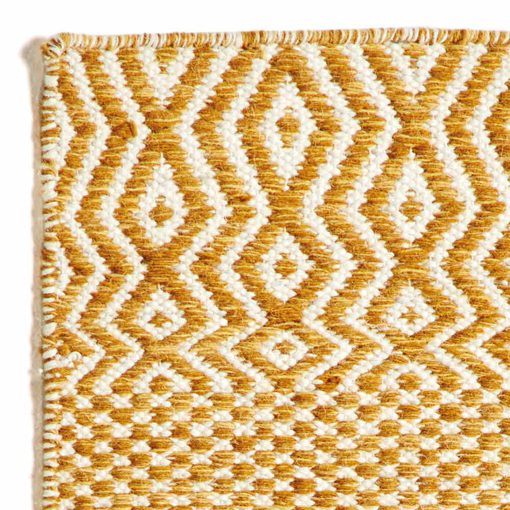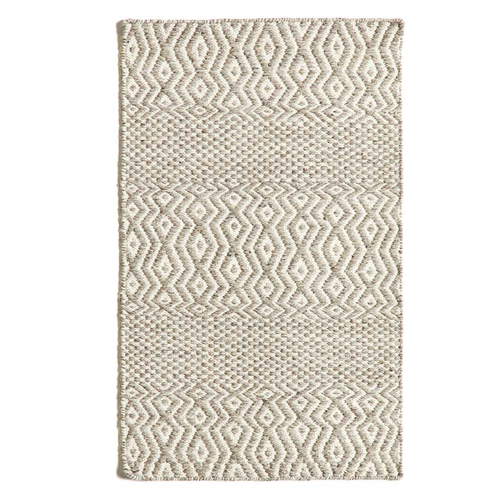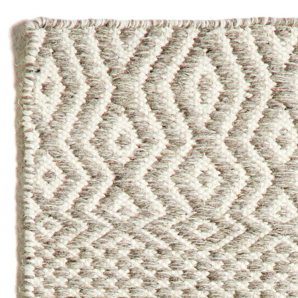 Handvävd vardagsrumsmatta i ull och bomull med mönstrad design.