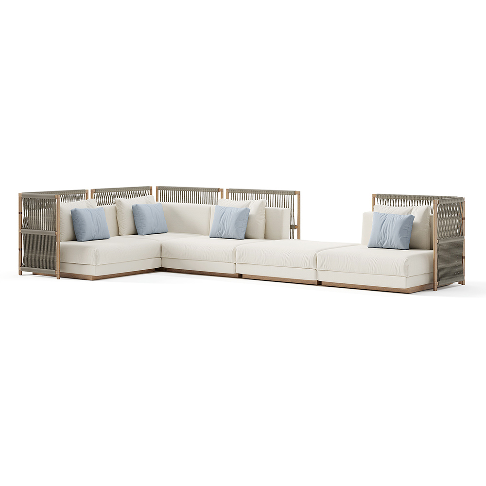 Sammansättning av trädgårdssoffa med kuddar i Made in Italy stoppat tyg