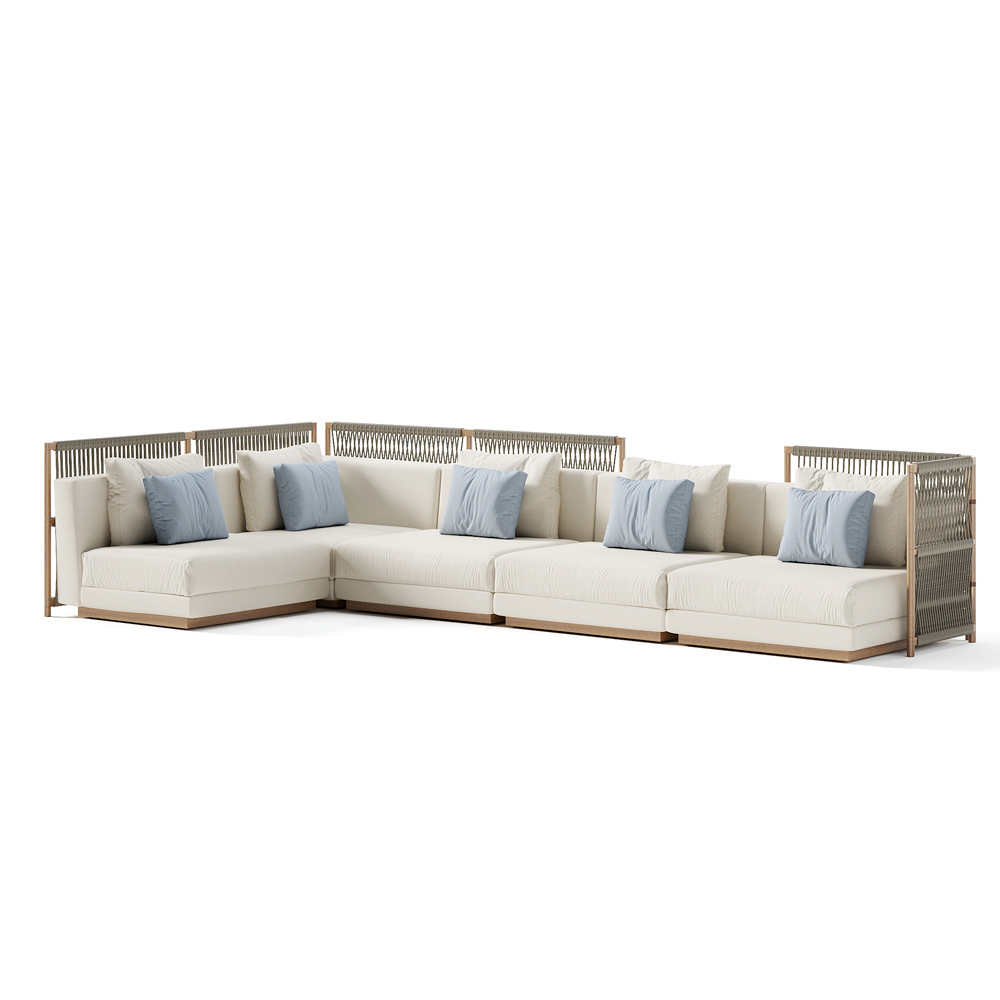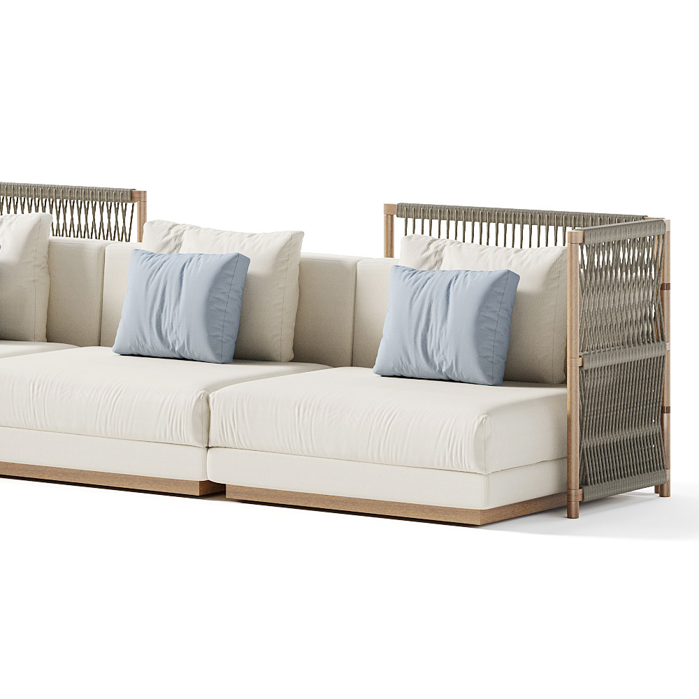 Sammansättning av trädgårdssoffa med stoppade kuddar i Made in Italy-tyg
