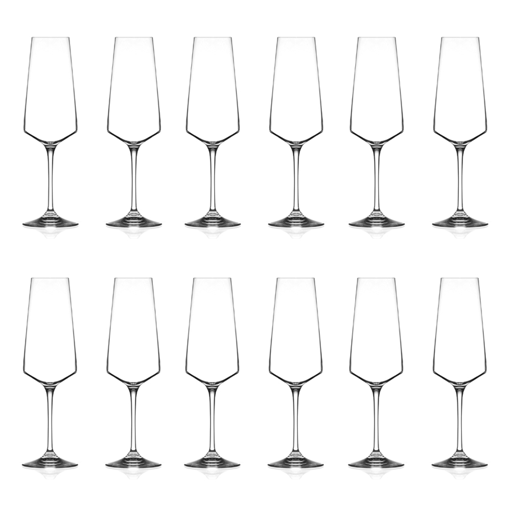 Uppsättning glas för mousserande vinflöjt i ekokristall 12 stycken tillverkade i Italien.