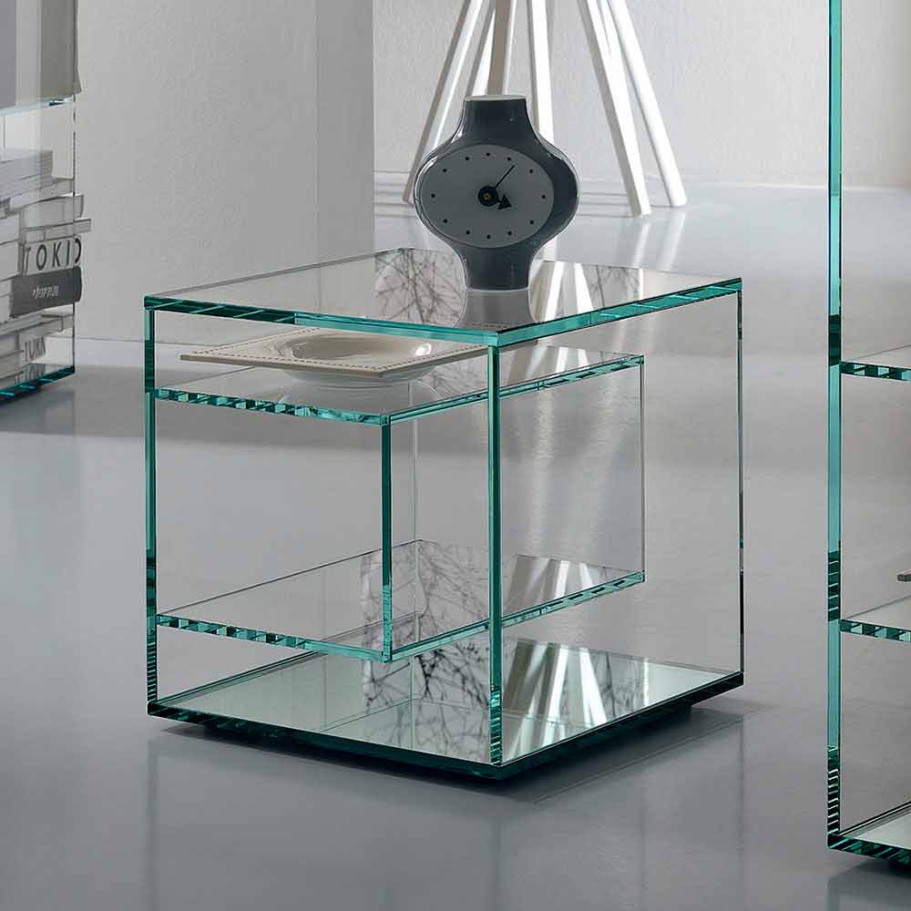 Detta nattbord kännetecknas av sin eleganta och minimala design helt och hållet i extra klart glas.