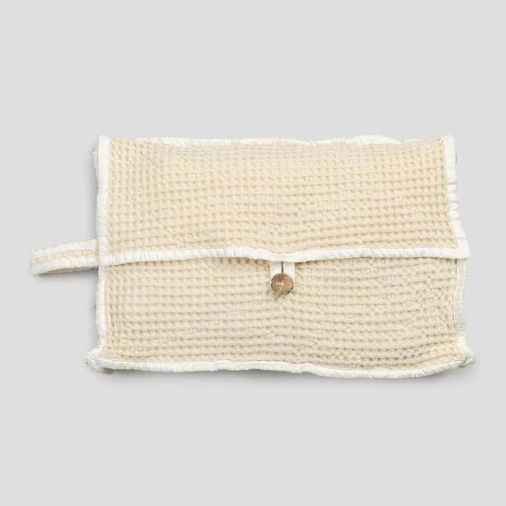 honeycomb bomull pochette och knapp Agoya ning pärlemor.