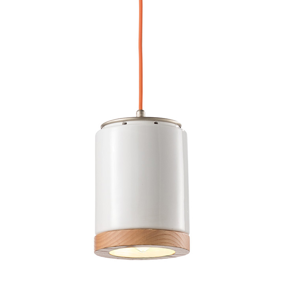 Nordisk design upphängd lampa i trä och keramik tillverkad i Italien av Ferroluce.