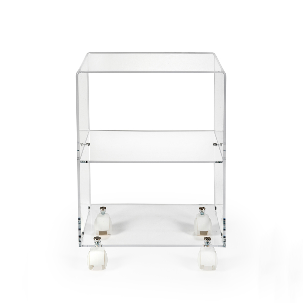 Mångsidig vagn som förkroppsligar essensen av praktiskt med en antydan av genomskinlig charm . Här är en del som inte bara är en inredningstillbehör, utan en sann hyllning till modern funktionalitet.