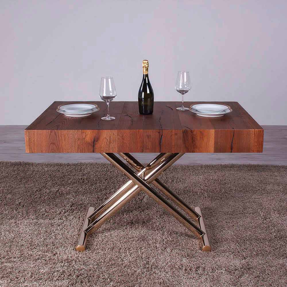 Modernt soffbord konverterbart till matbord med träskiva och metallunderrede Made in Italy.