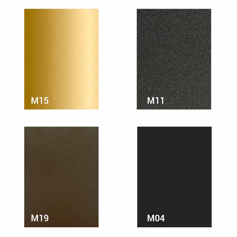 målad metallbas: glänsande guld, präglad grafit, präglad brons eller matt svart .