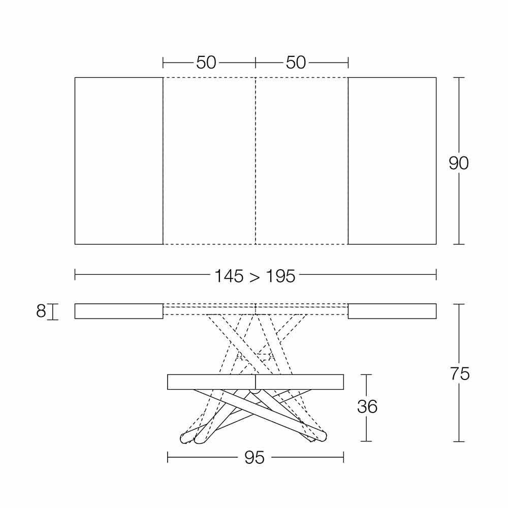 Modern design konvertibelt soffbord med skiva i melaminträ och metallunderrede Made in Italy.