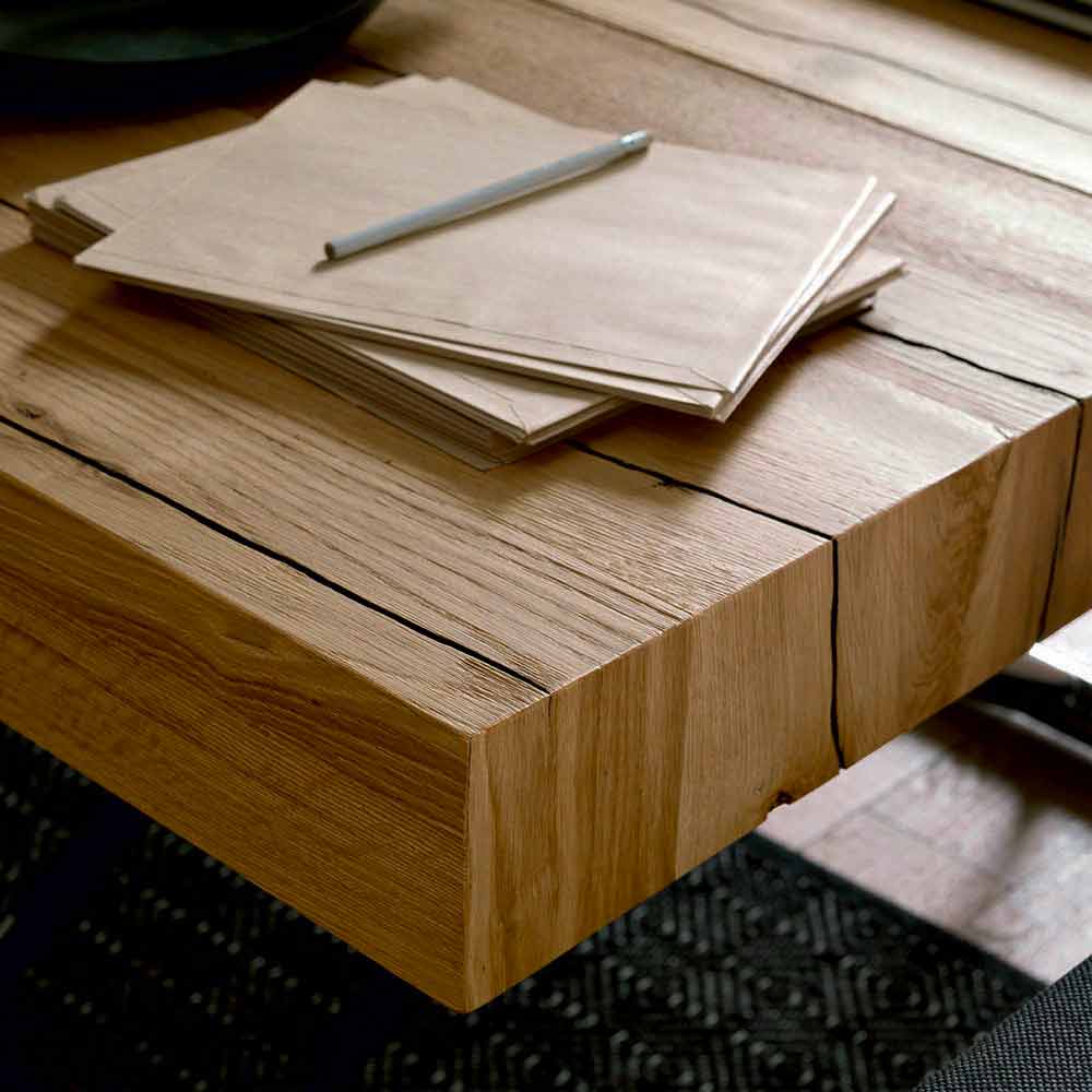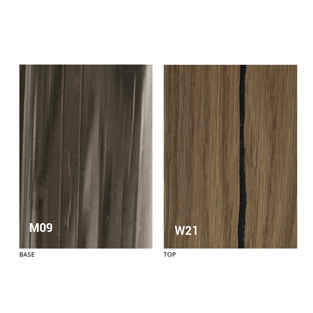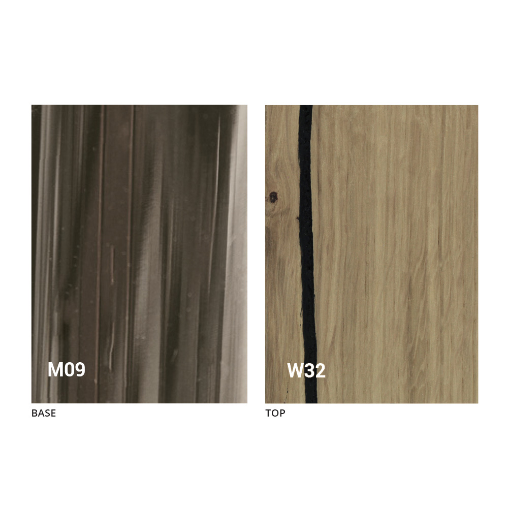 Den massiva träskivan finns i utföranden:- värmebehandlad massiv gammal ek;